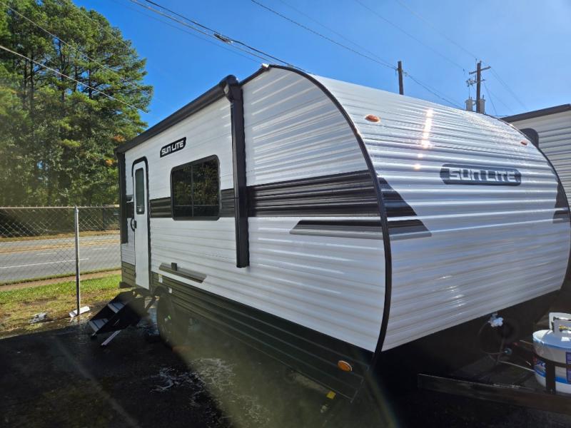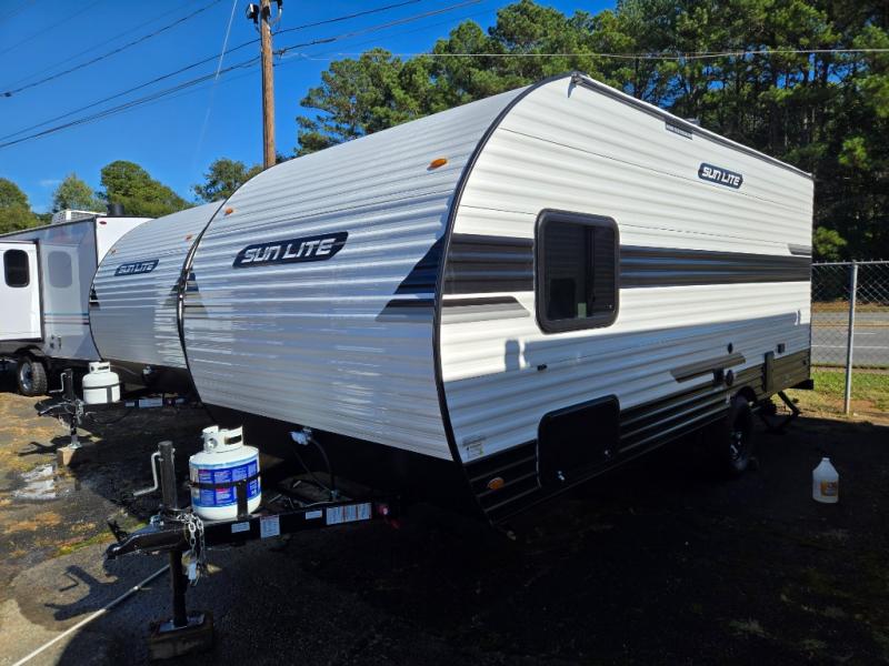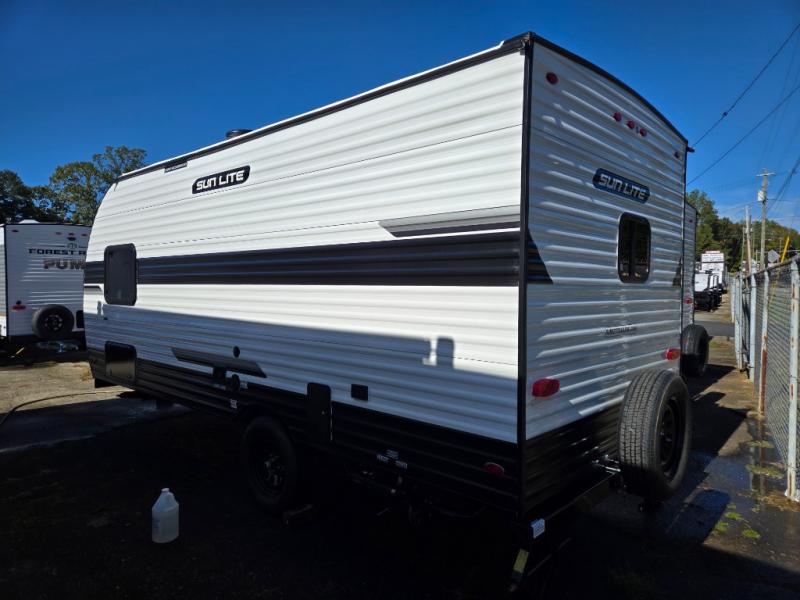 Each Sun Lite LTD travel trailer by Sunset Park RV is made with flexibility in mind. These lightweight models weigh under 3,000 lbs. for easy towing, and they offer best-in class interior storage for all your belongings. They are built with a one-piece PVC roof membrane and a durable rock guard that will help protect against rock and debris on the way to the campground. There is also an electric awning outside, along with a 100-watt solar kit, an outside shower, and more convenient features. You'll find a power roof vent in the bath, stylish window treatments, ball bearing drawer guides, and LED lights to name a few interior comforts.