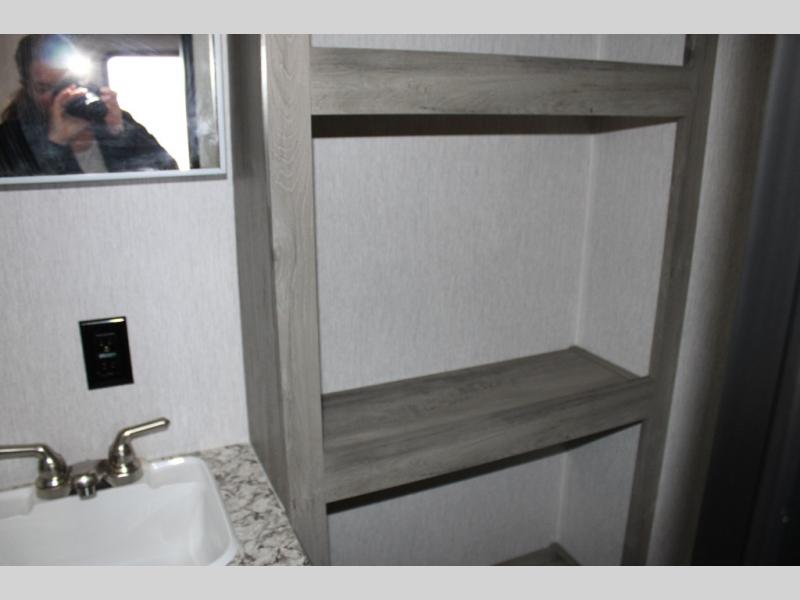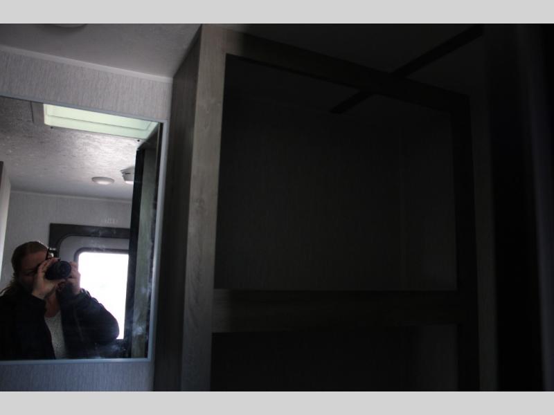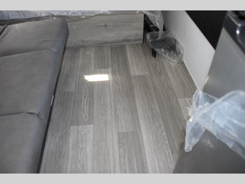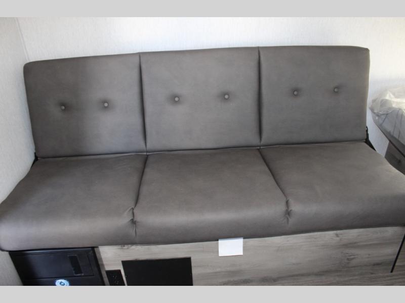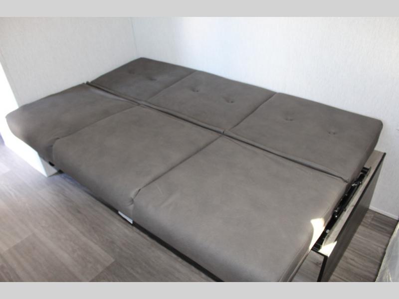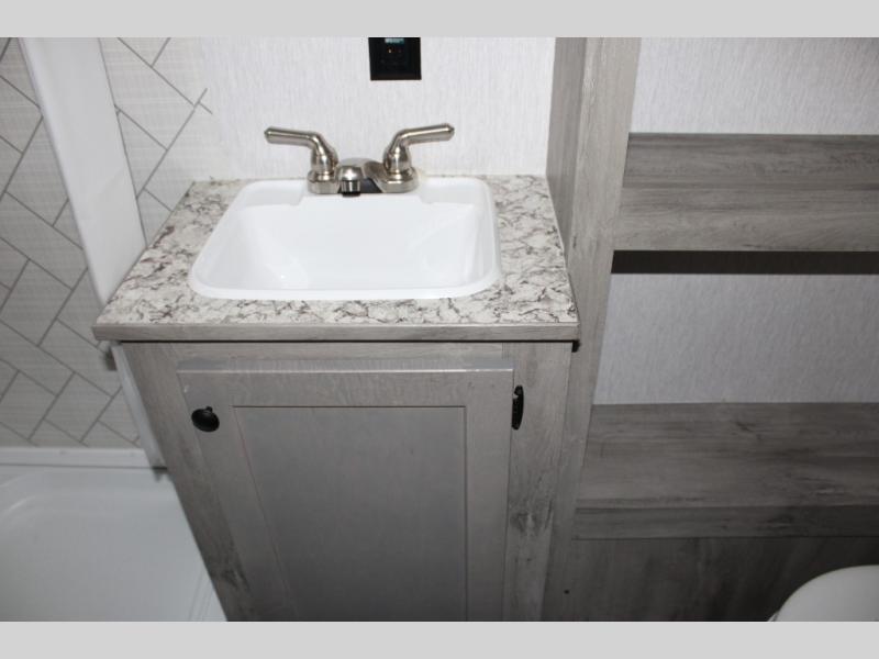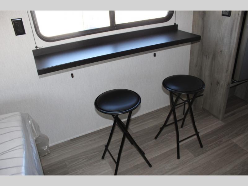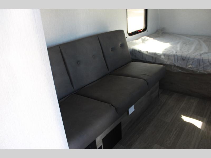 You're going to love every minute spent in this cozy travel trailer for three happy campers! The rear corner kitchen includes a two burner stove and double sink for easy clean up, and the full bath is in the other rear corner. This model also includes a 4.3 cu. ft. 12V refrigerator and a bar top where you can enjoy your meals together each day. The 68" jiffy sofa provides a place to relax in the evenings, and an overnight guests can make their bed here at night. You will find the RV queen bed to be accommodating, especially with its shelf for your personal belongings and a closet for clothes!