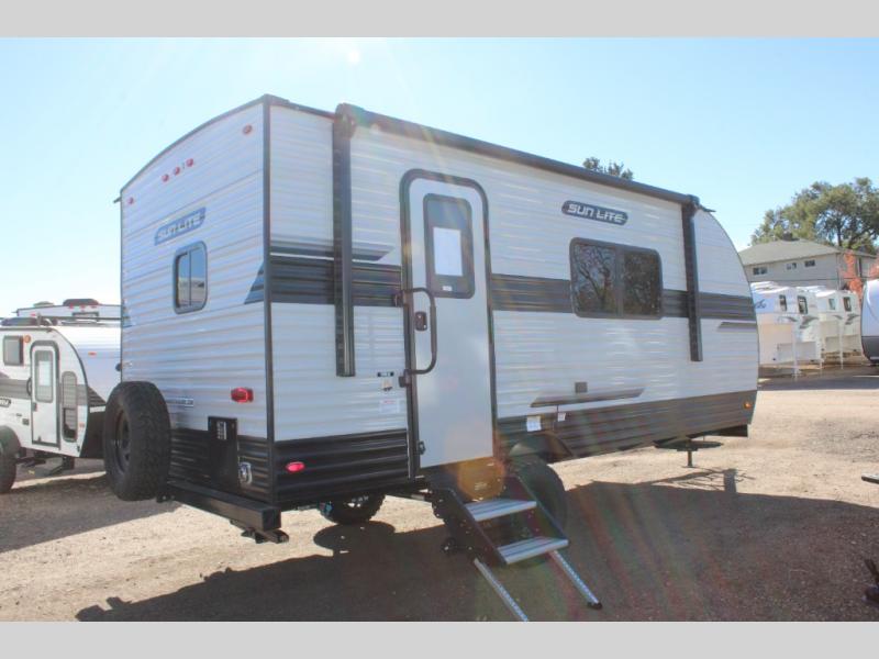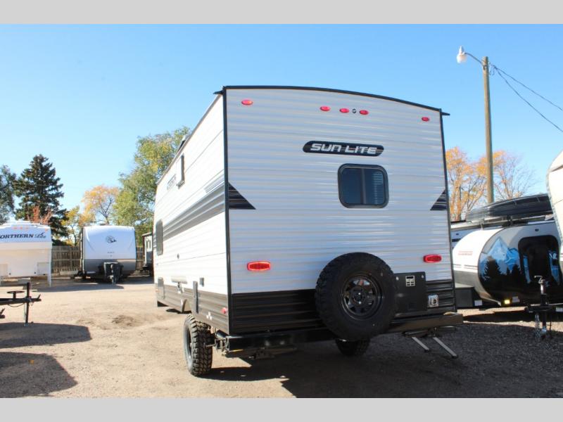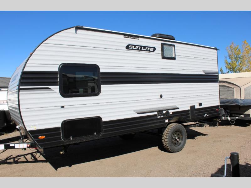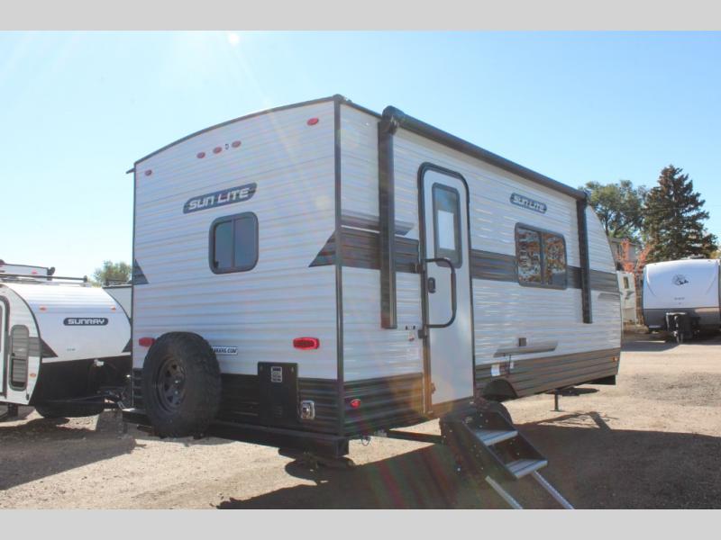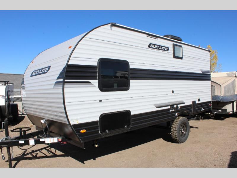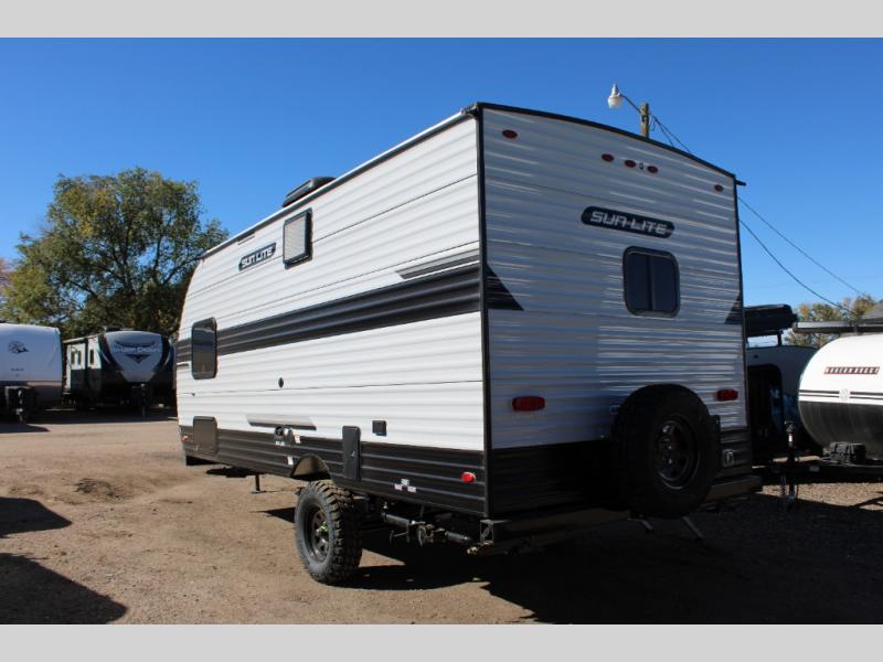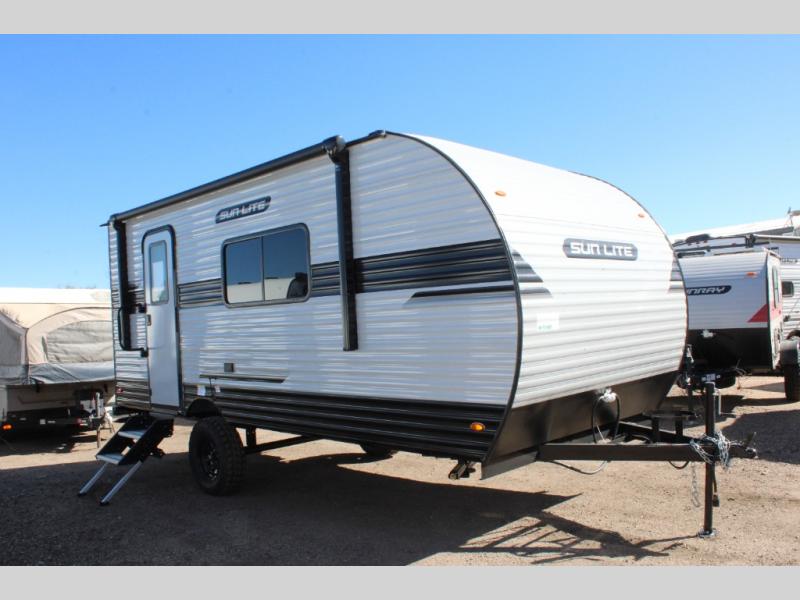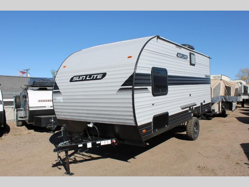 Each Sun Lite LTD travel trailer by Sunset Park RV is made with flexibility in mind. These lightweight models weigh under 3,000 lbs. for easy towing, and they offer best-in class interior storage for all your belongings. They are built with a one-piece PVC roof membrane and a durable rock guard that will help protect against rock and debris on the way to the campground. There is also an electric awning outside, along with a 100-watt solar kit, an outside shower, and more convenient features. You'll find a power roof vent in the bath, stylish window treatments, ball bearing drawer guides, and LED lights to name a few interior comforts.