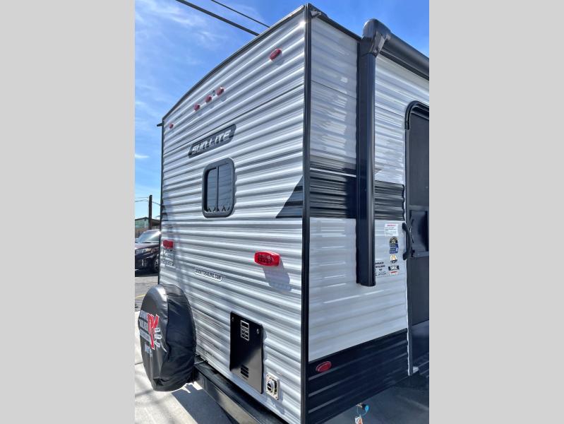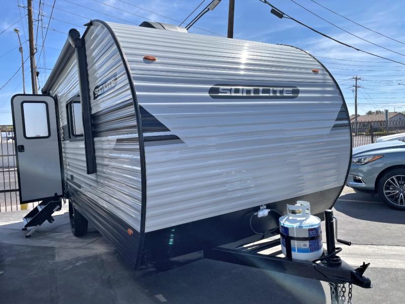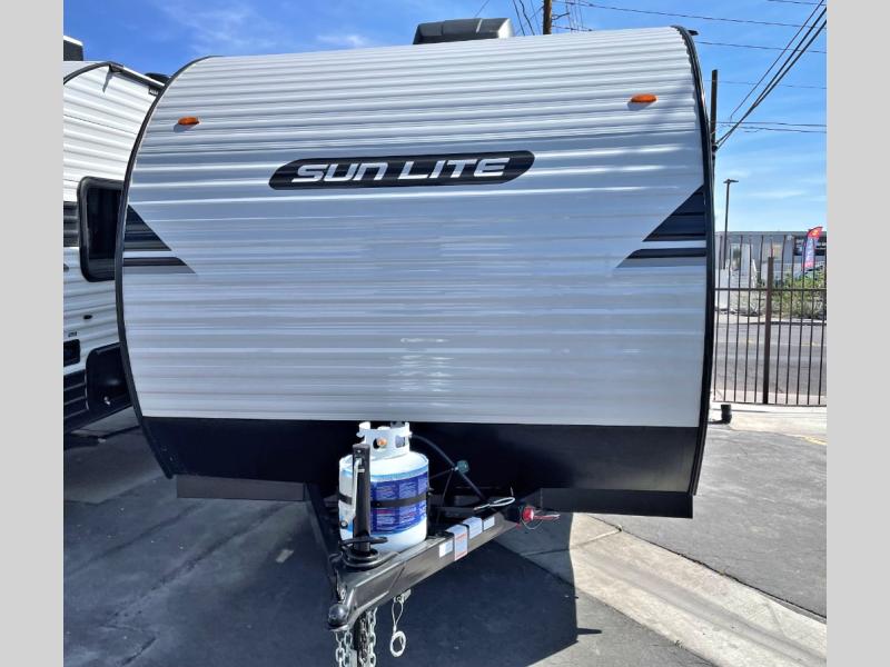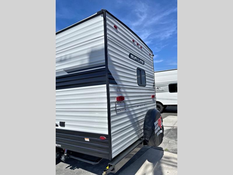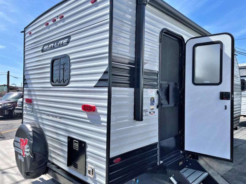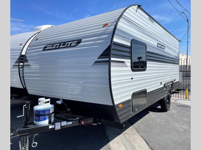 Each Sun Lite LTD travel trailer by Sunset Park RV is made with flexibility in mind. These lightweight models weigh under 3,000 lbs. for easy towing, and they offer best-in class interior storage for all your belongings. They are built with a one-piece PVC roof membrane and a durable rock guard that will help protect against rock and debris on the way to the campground. There is also an electric awning outside, along with a 100-watt solar kit, an outside shower, and more convenient features. You'll find a power roof vent in the bath, stylish window treatments, ball bearing drawer guides, and LED lights to name a few interior comforts.
