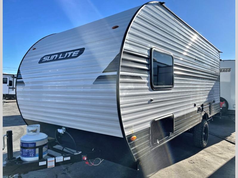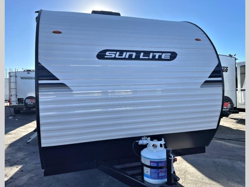 Each Sun Lite LTD travel trailer by Sunset Park RV is made with flexibility in mind. These lightweight models weigh under 3,000 lbs. for easy towing, and they offer best-in class interior storage for all your belongings. They are built with a one-piece PVC roof membrane and a durable rock guard that will help protect against rock and debris on the way to the campground. There is also an electric awning outside, along with a 100-watt solar kit, an outside shower, and more convenient features. You'll find a power roof vent in the bath, stylish window treatments, ball bearing drawer guides, and LED lights to name a few interior comforts.