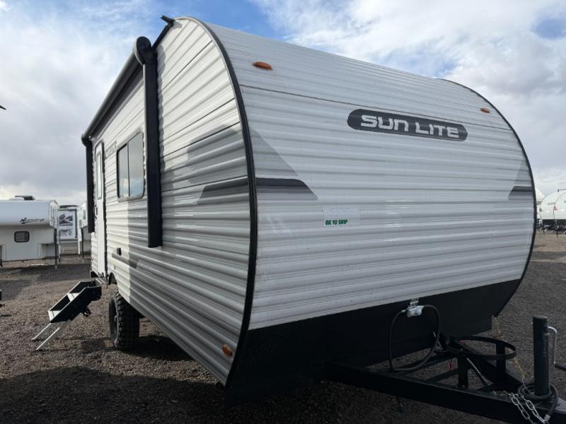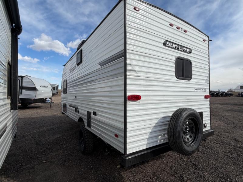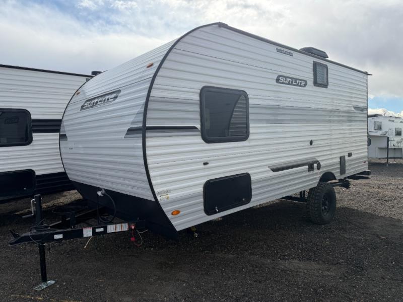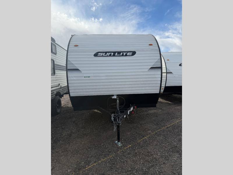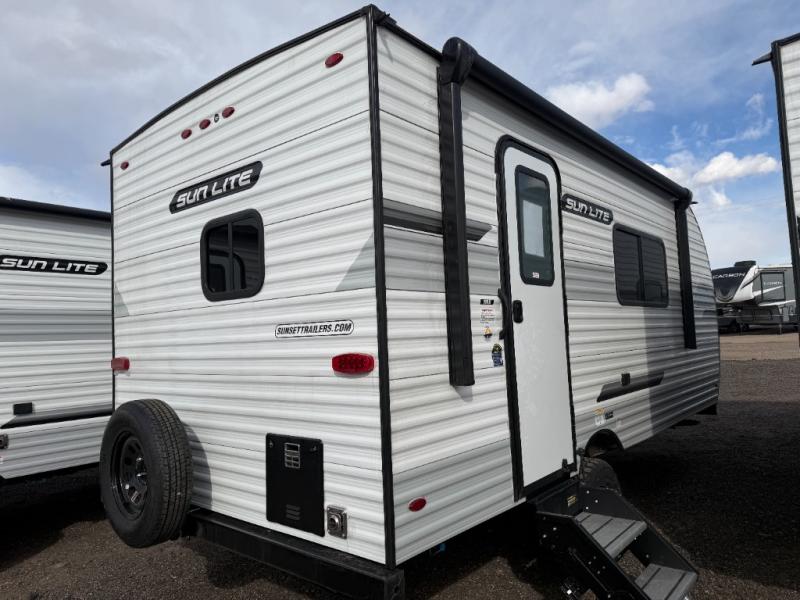 Each Sun Lite LTD travel trailer by Sunset Park RV is made with flexibility in mind. These lightweight models weigh under 3,000 lbs. for easy towing, and they offer best-in class interior storage for all your belongings. They are built with a one-piece PVC roof membrane and a durable rock guard that will help protect against rock and debris on the way to the campground. There is also an electric awning outside, along with a 100-watt solar kit, an outside shower, and more convenient features. You'll find a power roof vent in the bath, stylish window treatments, ball bearing drawer guides, and LED lights to name a few interior comforts.