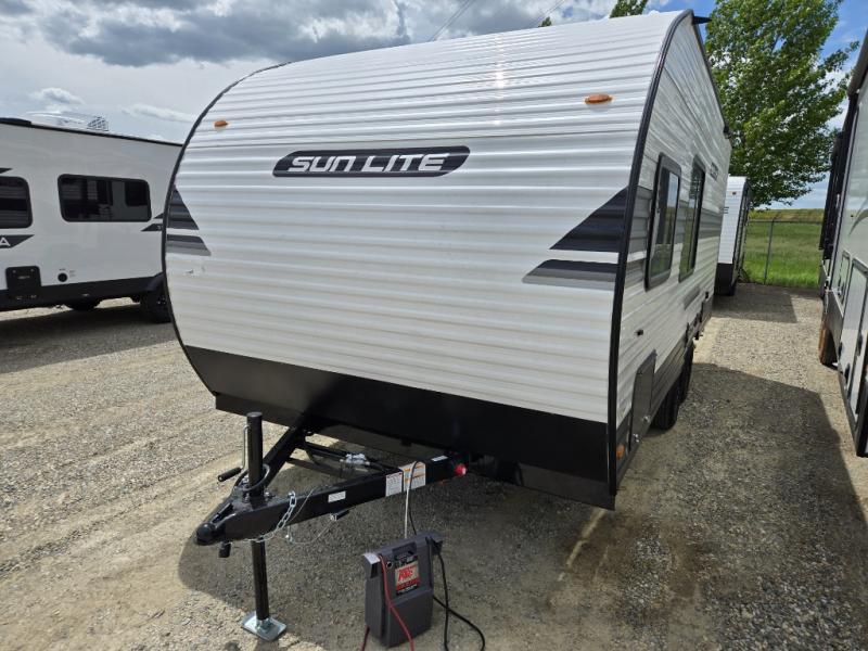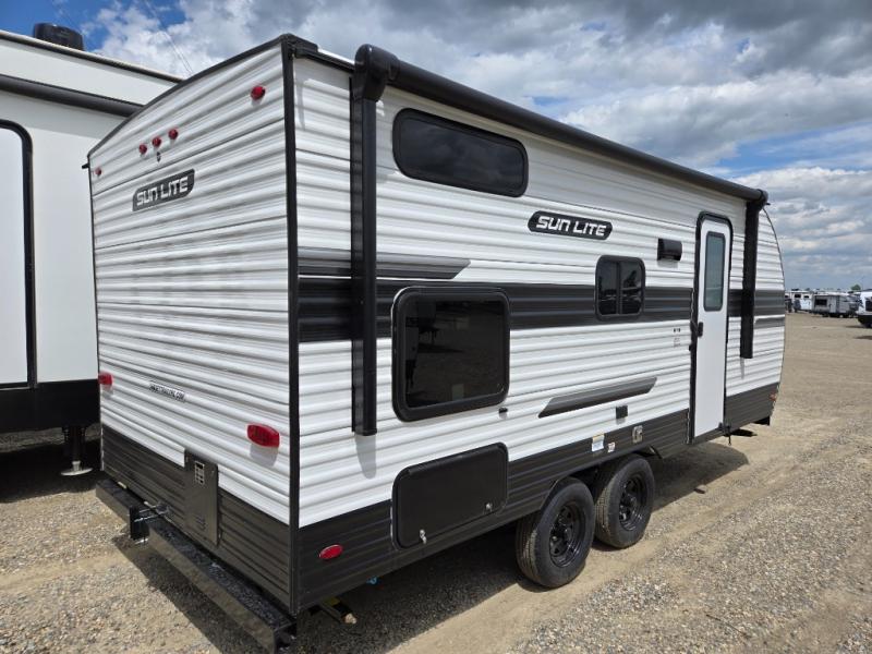 Each Sun Lite LTD travel trailer by Sunset Park RV is made with flexibility in mind. These lightweight models weigh under 3,000 lbs. for easy towing, and they offer best-in class interior storage for all your belongings. They are built with a one-piece PVC roof membrane and a durable rock guard that will help protect against rock and debris on the way to the campground. There is also an electric awning outside, along with a 100-watt solar kit, an outside shower, and more convenient features. You'll find a power roof vent in the bath, stylish window treatments, ball bearing drawer guides, and LED lights to name a few interior comforts.