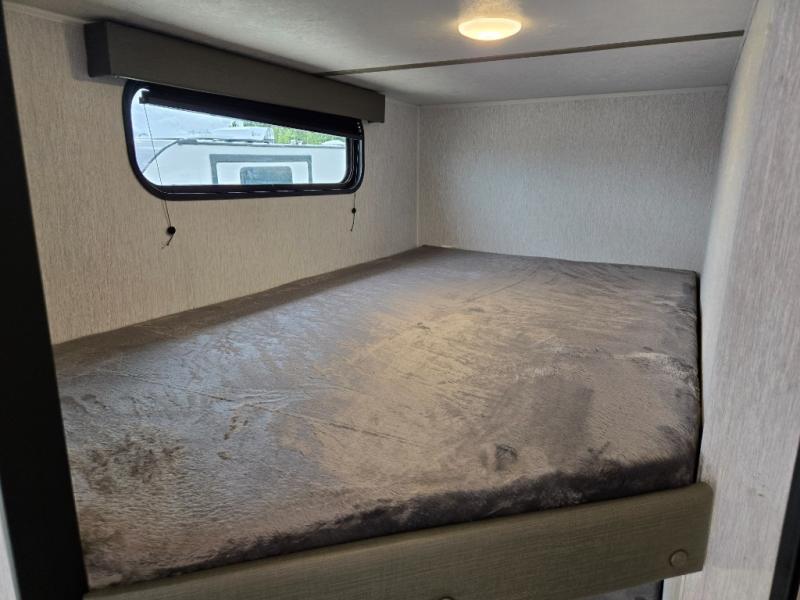 The perfect family-friendly travel trailer is found with this Sun Lite LTD model. You can take the front bed each night, while your guests or little ones take the double-size bunks towards the back. And if you're not needing the additional sleeping space, you can choose the desk option in place of the bunks. There is also a full bath right next to the bunks for easy nighttime use. The chef of your group can make meals using the three burner cooktop, and there is a double bowl sink for easy clean up. Once dinner has been cleaned up, you can play a game at the booth dinette, or head outdoors for an evening walk around the campground!