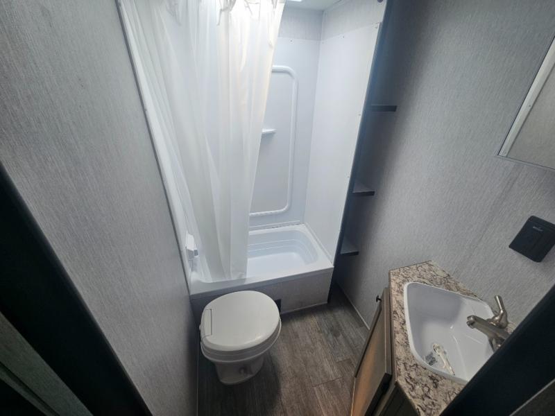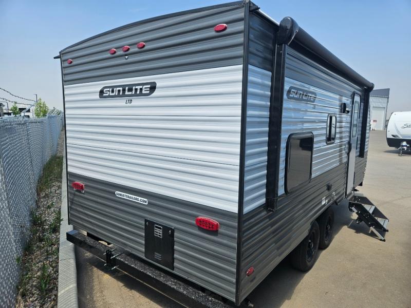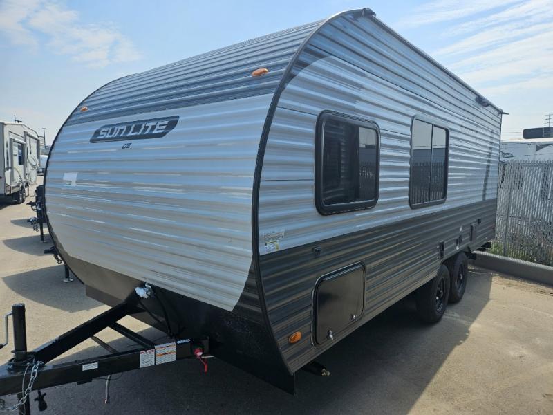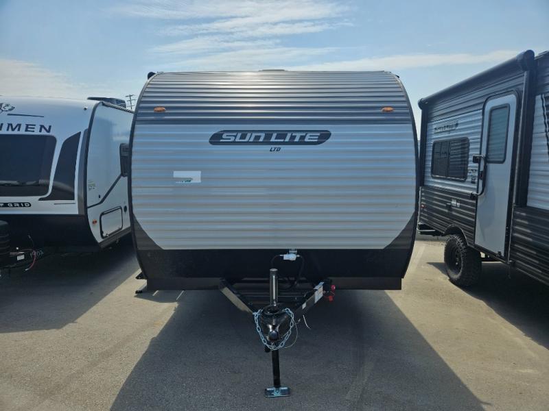 Each Sun Lite LTD travel trailer by Sunset Park RV is made with flexibility in mind. These lightweight models weigh under 3,000 lbs. for easy towing, and they offer best-in class interior storage for all your belongings. They are built with a one-piece PVC roof membrane and a durable rock guard that will help protect against rock and debris on the way to the campground. There is also an electric awning outside, along with a 100-watt solar kit, an outside shower, and more convenient features. You'll find a power roof vent in the bath, stylish window treatments, ball bearing drawer guides, and LED lights to name a few interior comforts.