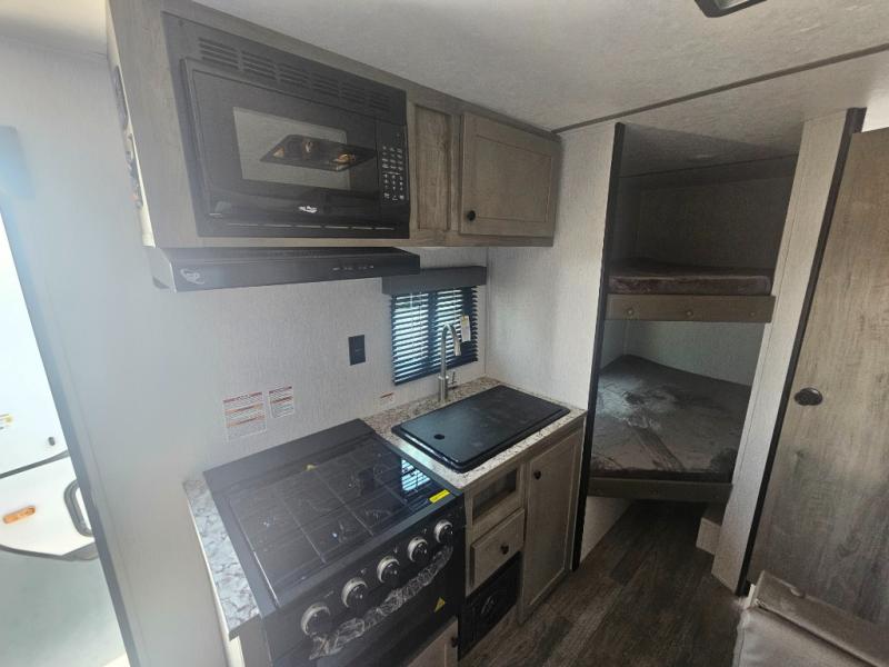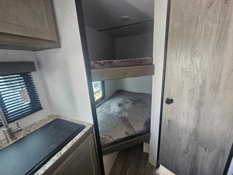 The perfect family-friendly travel trailer is found with this Sun Lite LTD model. You can take the front bed each night, while your guests or little ones take the double-size bunks towards the back. And if you're not needing the additional sleeping space, you can choose the desk option in place of the bunks. There is also a full bath right next to the bunks for easy nighttime use. The chef of your group can make meals using the three burner cooktop, and there is a double bowl sink for easy clean up. Once dinner has been cleaned up, you can play a game at the booth dinette, or head outdoors for an evening walk around the campground!