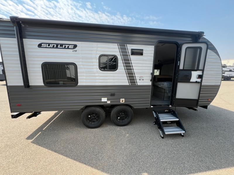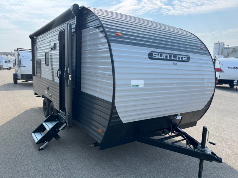 Each Sun Lite LTD travel trailer by Sunset Park RV is made with flexibility in mind. These lightweight models weigh under 3,000 lbs. for easy towing, and they offer best-in class interior storage for all your belongings. They are built with a one-piece PVC roof membrane and a durable rock guard that will help protect against rock and debris on the way to the campground. There is also an electric awning outside, along with a 100-watt solar kit, an outside shower, and more convenient features. You'll find a power roof vent in the bath, stylish window treatments, ball bearing drawer guides, and LED lights to name a few interior comforts.