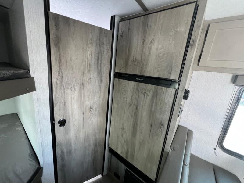 The perfect family-friendly travel trailer is found with this Sun Lite LTD model. You can take the front bed each night, while your guests or little ones take the double-size bunks towards the back. And if you're not needing the additional sleeping space, you can choose the desk option in place of the bunks. There is also a full bath right next to the bunks for easy nighttime use. The chef of your group can make meals using the three burner cooktop, and there is a double bowl sink for easy clean up. Once dinner has been cleaned up, you can play a game at the booth dinette, or head outdoors for an evening walk around the campground!