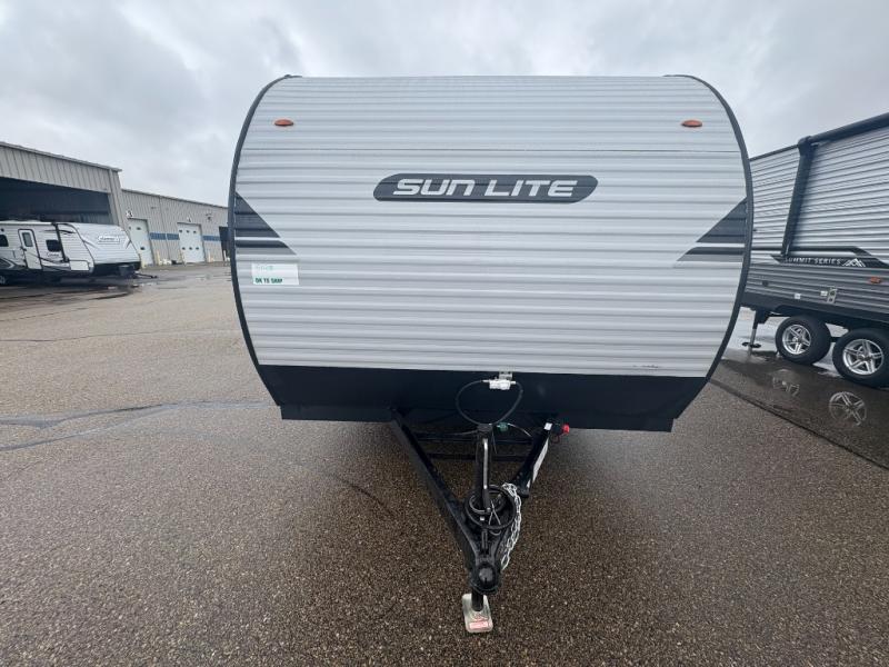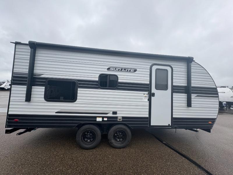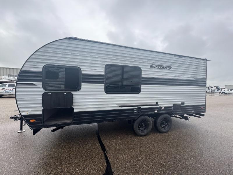 Each Sun Lite LTD travel trailer by Sunset Park RV is made with flexibility in mind. These lightweight models weigh under 3,000 lbs. for easy towing, and they offer best-in class interior storage for all your belongings. They are built with a one-piece PVC roof membrane and a durable rock guard that will help protect against rock and debris on the way to the campground. There is also an electric awning outside, along with a 100-watt solar kit, an outside shower, and more convenient features. You'll find a power roof vent in the bath, stylish window treatments, ball bearing drawer guides, and LED lights to name a few interior comforts.