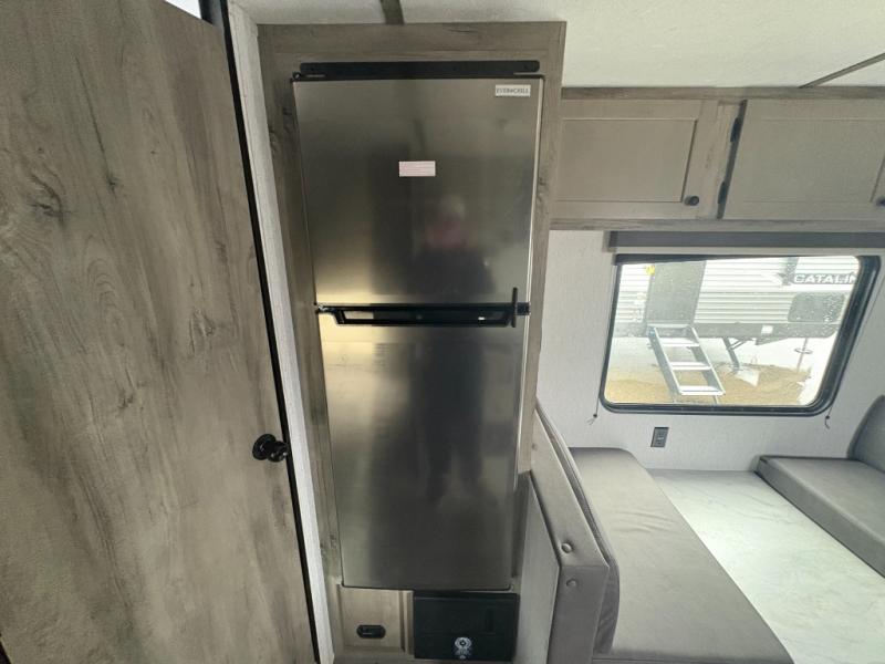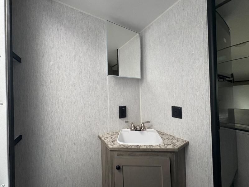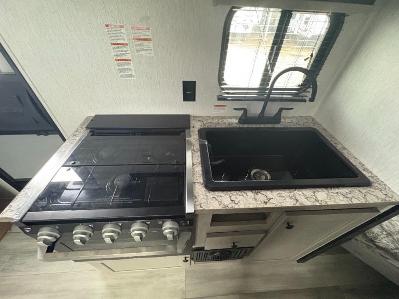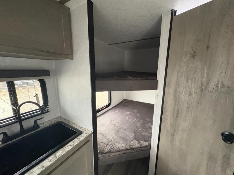 The perfect family-friendly travel trailer is found with this Sun Lite LTD model. You can take the front bed each night, while your guests or little ones take the double-size bunks towards the back. And if you're not needing the additional sleeping space, you can choose the desk option in place of the bunks. There is also a full bath right next to the bunks for easy nighttime use. The chef of your group can make meals using the three burner cooktop, and there is a double bowl sink for easy clean up. Once dinner has been cleaned up, you can play a game at the booth dinette, or head outdoors for an evening walk around the campground!