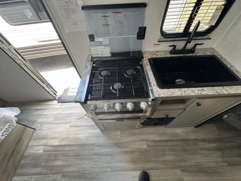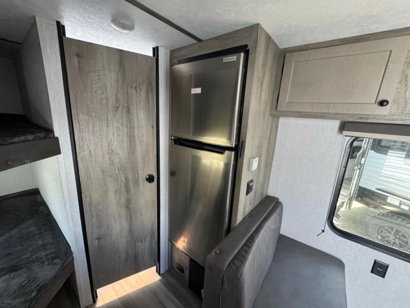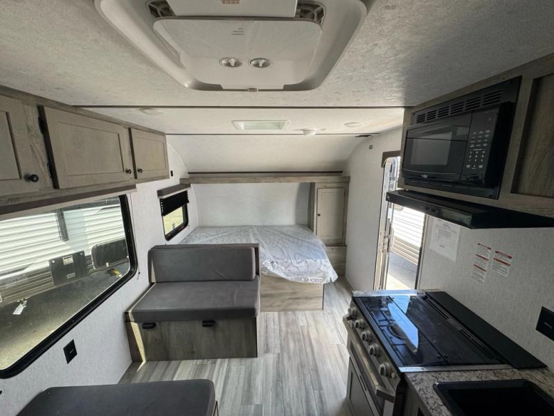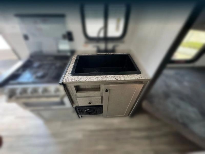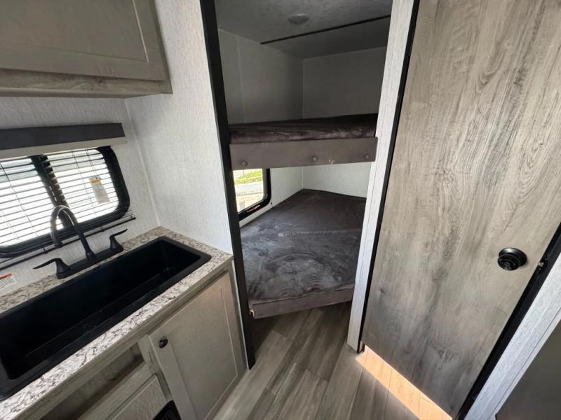 The perfect family-friendly travel trailer is found with this Sun Lite LTD model. You can take the front bed each night, while your guests or little ones take the double-size bunks towards the back. And if you're not needing the additional sleeping space, you can choose the desk option in place of the bunks. There is also a full bath right next to the bunks for easy nighttime use. The chef of your group can make meals using the three burner cooktop, and there is a double bowl sink for easy clean up. Once dinner has been cleaned up, you can play a game at the booth dinette, or head outdoors for an evening walk around the campground!