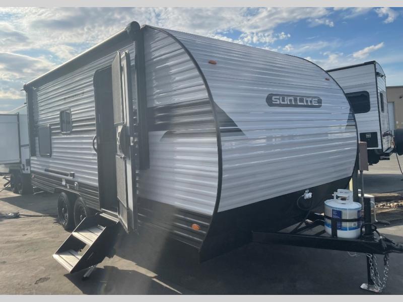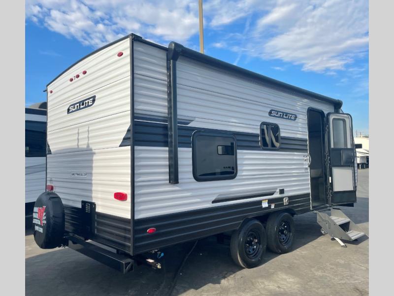 Each Sun Lite LTD travel trailer by Sunset Park RV is made with flexibility in mind. These lightweight models weigh under 3,000 lbs. for easy towing, and they offer best-in class interior storage for all your belongings. They are built with a one-piece PVC roof membrane and a durable rock guard that will help protect against rock and debris on the way to the campground. There is also an electric awning outside, along with a 100-watt solar kit, an outside shower, and more convenient features. You'll find a power roof vent in the bath, stylish window treatments, ball bearing drawer guides, and LED lights to name a few interior comforts.