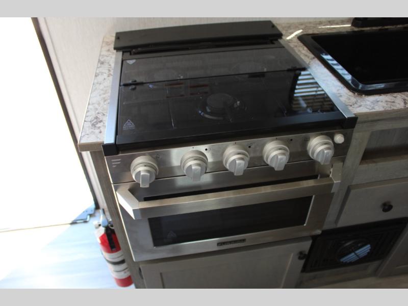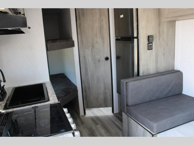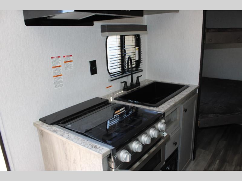 The perfect family-friendly travel trailer is found with this Sun Lite LTD model. You can take the front bed each night, while your guests or little ones take the double-size bunks towards the back. And if you're not needing the additional sleeping space, you can choose the desk option in place of the bunks. There is also a full bath right next to the bunks for easy nighttime use. The chef of your group can make meals using the three burner cooktop, and there is a double bowl sink for easy clean up. Once dinner has been cleaned up, you can play a game at the booth dinette, or head outdoors for an evening walk around the campground!