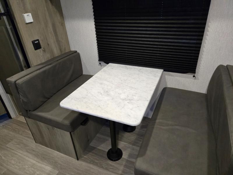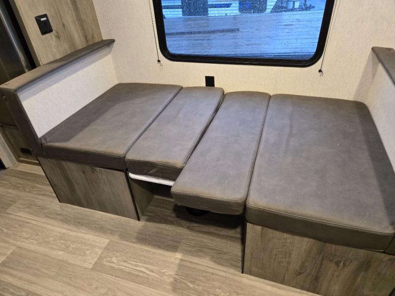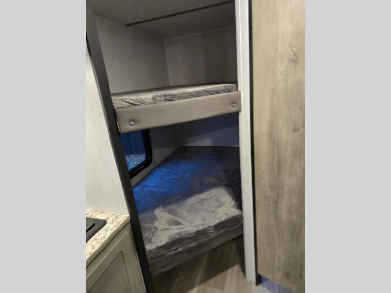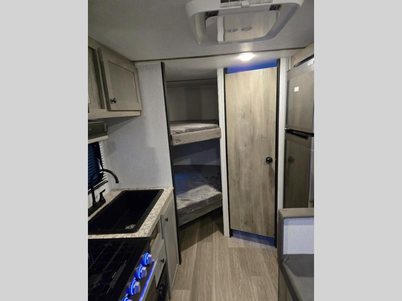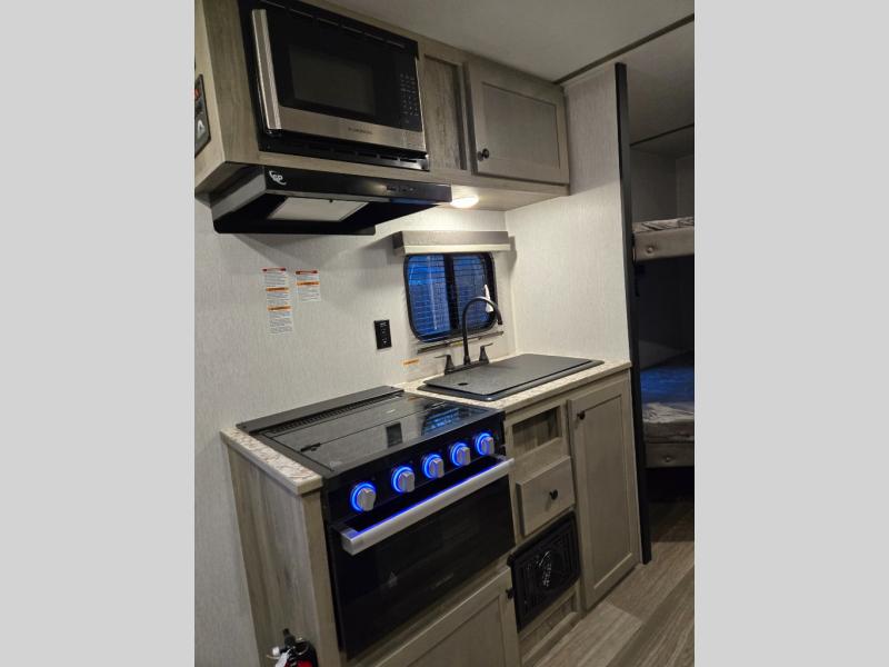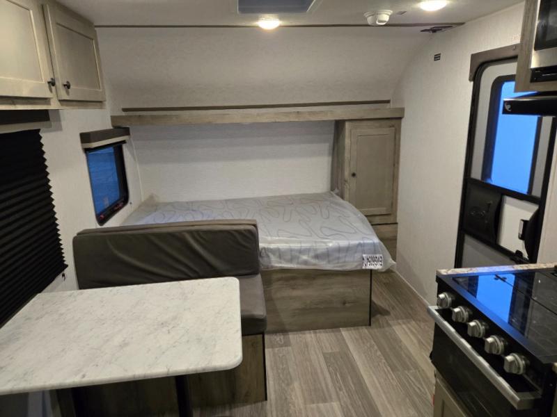 The perfect family-friendly travel trailer is found with this Sun Lite LTD model. You can take the front bed each night, while your guests or little ones take the double-size bunks towards the back. And if you're not needing the additional sleeping space, you can choose the desk option in place of the bunks. There is also a full bath right next to the bunks for easy nighttime use. The chef of your group can make meals using the three burner cooktop, and there is a double bowl sink for easy clean up. Once dinner has been cleaned up, you can play a game at the booth dinette, or head outdoors for an evening walk around the campground!