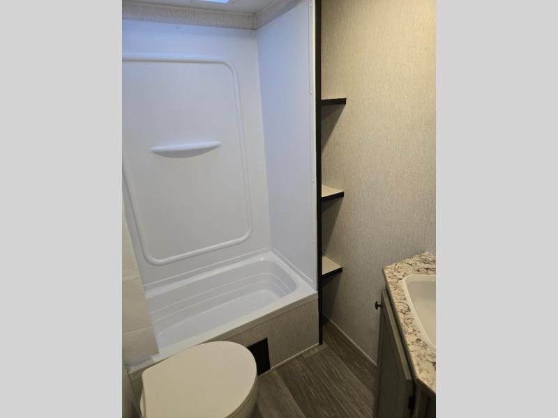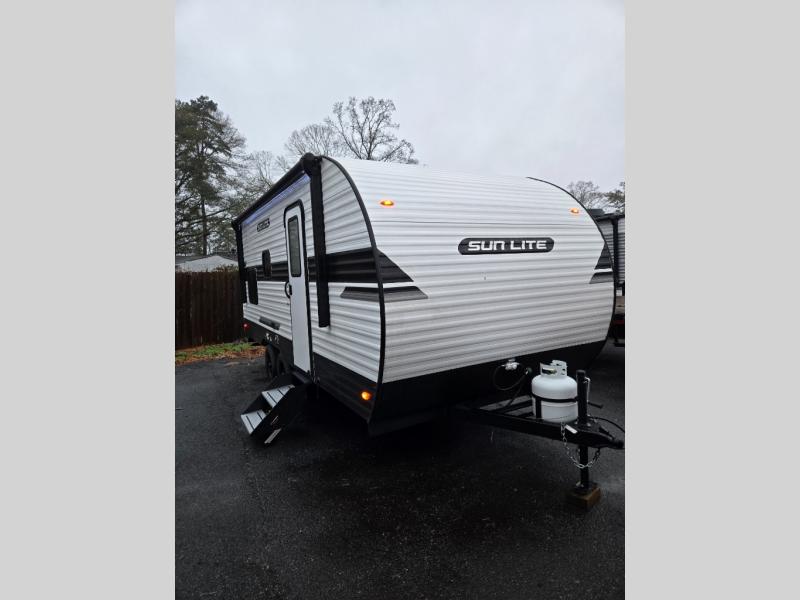 Each Sun Lite LTD travel trailer by Sunset Park RV is made with flexibility in mind. These lightweight models weigh under 3,000 lbs. for easy towing, and they offer best-in class interior storage for all your belongings. They are built with a one-piece PVC roof membrane and a durable rock guard that will help protect against rock and debris on the way to the campground. There is also an electric awning outside, along with a 100-watt solar kit, an outside shower, and more convenient features. You'll find a power roof vent in the bath, stylish window treatments, ball bearing drawer guides, and LED lights to name a few interior comforts.