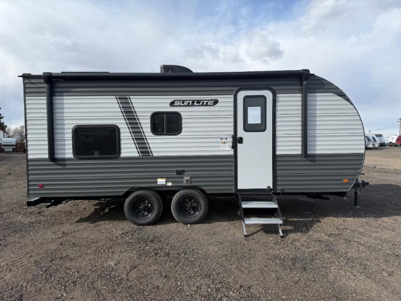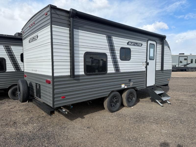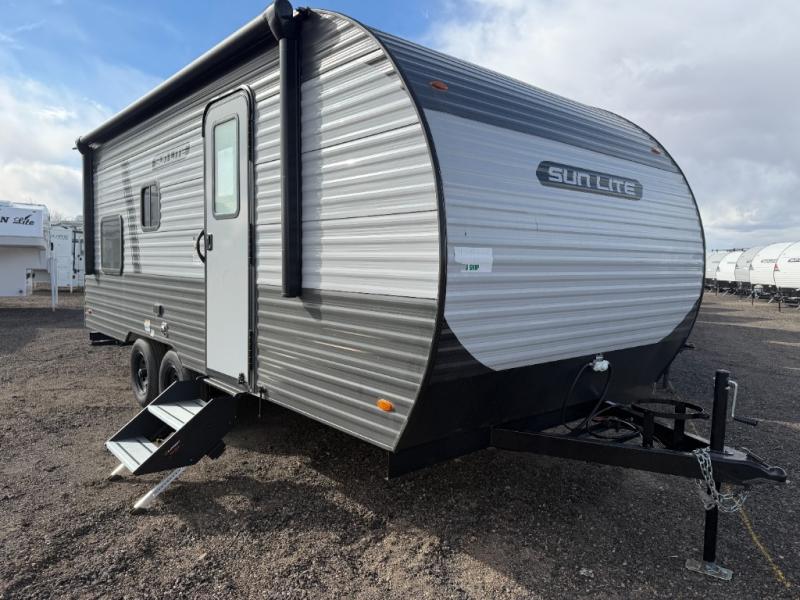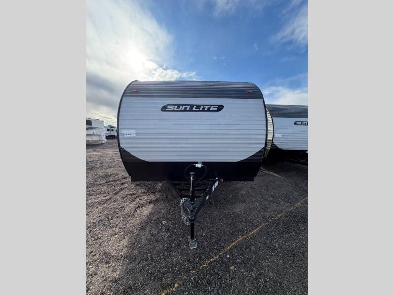 Each Sun Lite LTD travel trailer by Sunset Park RV is made with flexibility in mind. These lightweight models weigh under 3,000 lbs. for easy towing, and they offer best-in class interior storage for all your belongings. They are built with a one-piece PVC roof membrane and a durable rock guard that will help protect against rock and debris on the way to the campground. There is also an electric awning outside, along with a 100-watt solar kit, an outside shower, and more convenient features. You'll find a power roof vent in the bath, stylish window treatments, ball bearing drawer guides, and LED lights to name a few interior comforts.