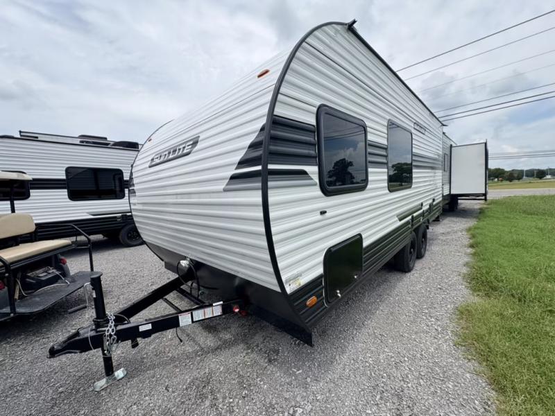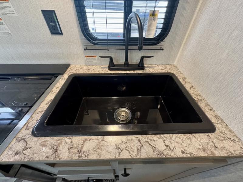 Each Sun Lite LTD travel trailer by Sunset Park RV is made with flexibility in mind. These lightweight models weigh under 3,000 lbs. for easy towing, and they offer best-in class interior storage for all your belongings. They are built with a one-piece PVC roof membrane and a durable rock guard that will help protect against rock and debris on the way to the campground. There is also an electric awning outside, along with a 100-watt solar kit, an outside shower, and more convenient features. You'll find a power roof vent in the bath, stylish window treatments, ball bearing drawer guides, and LED lights to name a few interior comforts.