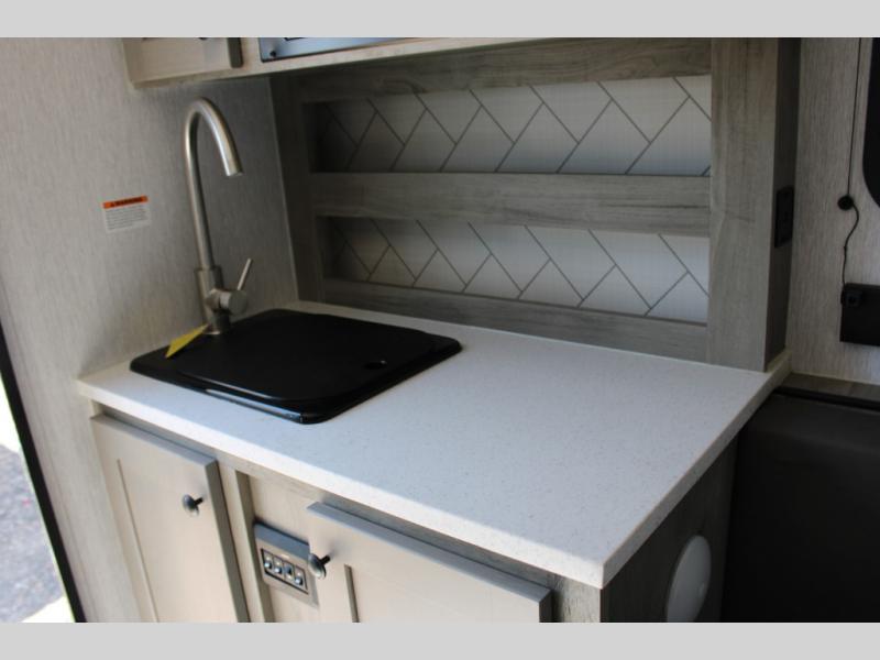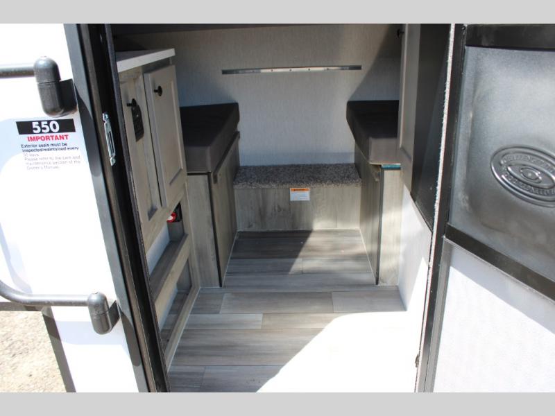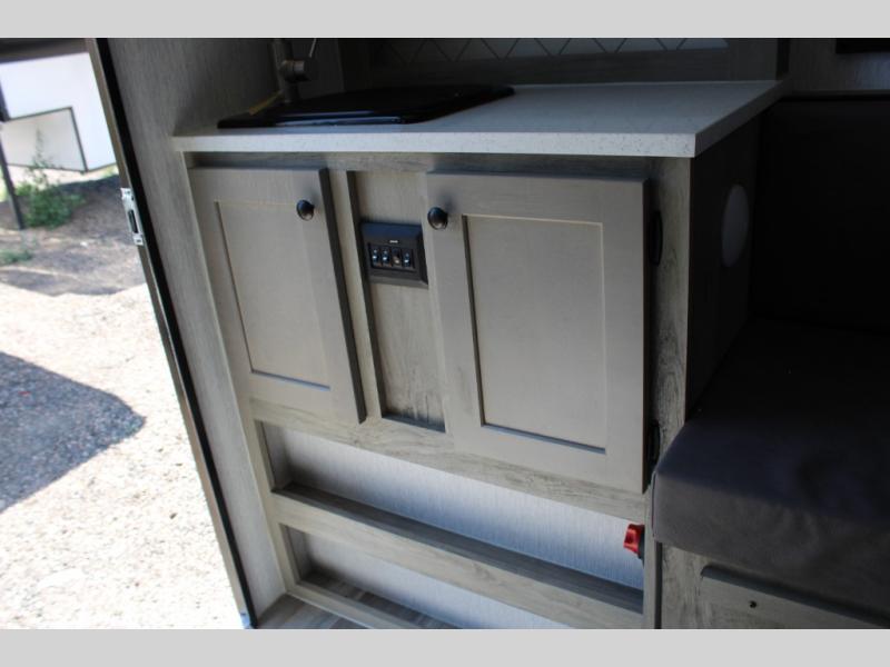 This truck camper is simple and to the point! You'll have somewhere to rest your head each night thanks to the front bed and booth dinette that will double as both seating and sleeping space. Once you've made dinner on your own outdoor grill, you can wash up using the indoor sink, and there is counter space here also. You'll appreciate the added safety features that include a smoke detector, fire extinguisher, and a C/O detector.