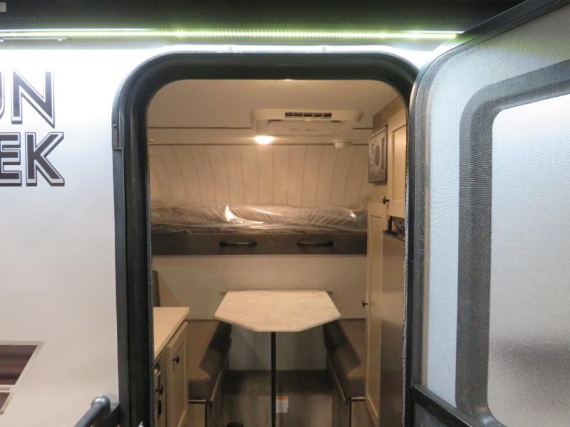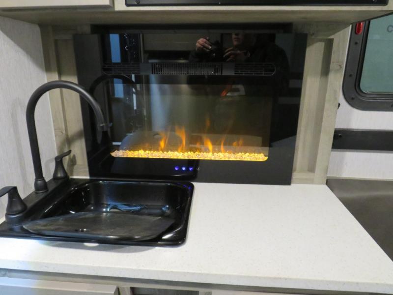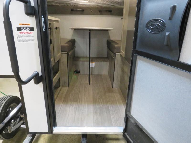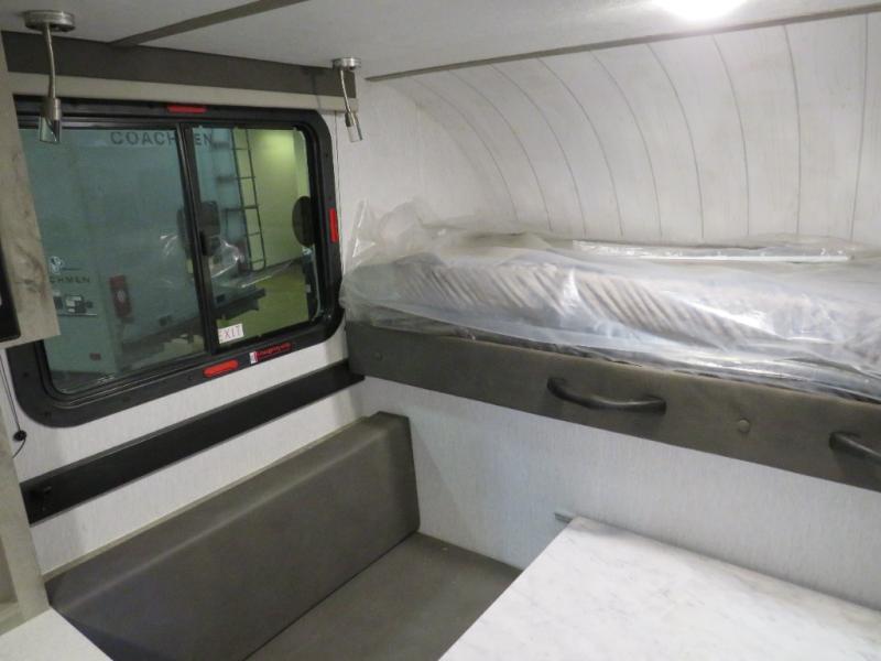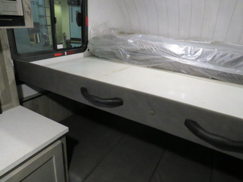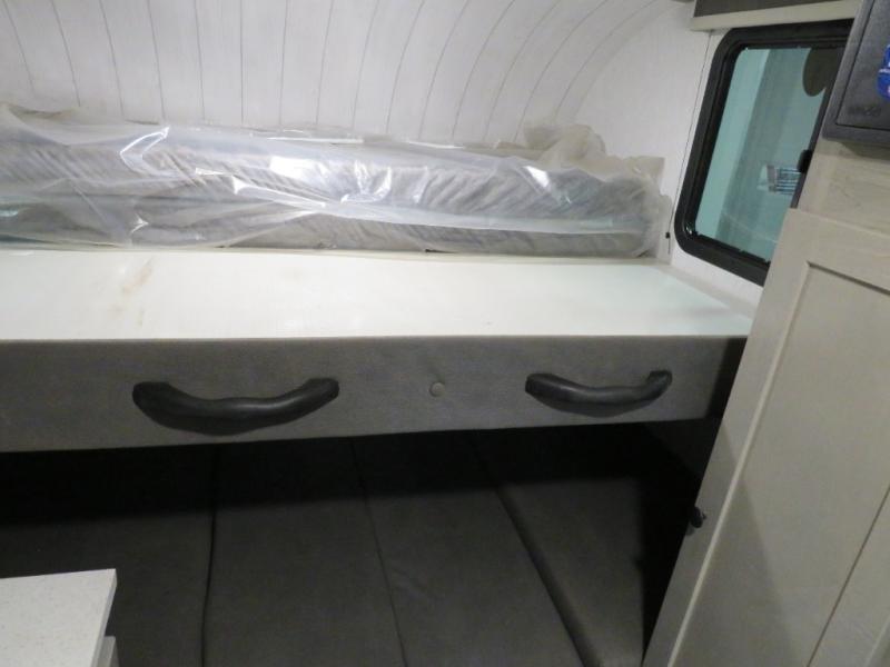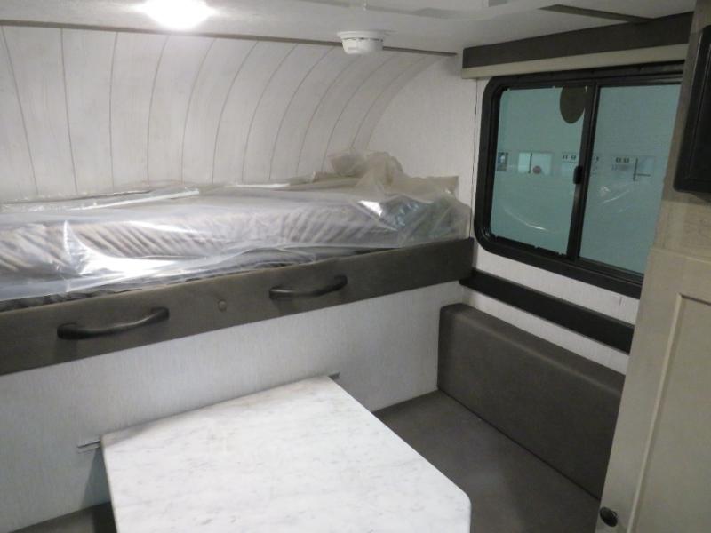 This truck camper is simple and to the point! You'll have somewhere to rest your head each night thanks to the front bed and booth dinette that will double as both seating and sleeping space. Once you've made dinner on your own outdoor grill, you can wash up using the indoor sink, and there is counter space here also. You'll appreciate the added safety features that include a smoke detector, fire extinguisher, and a C/O detector.