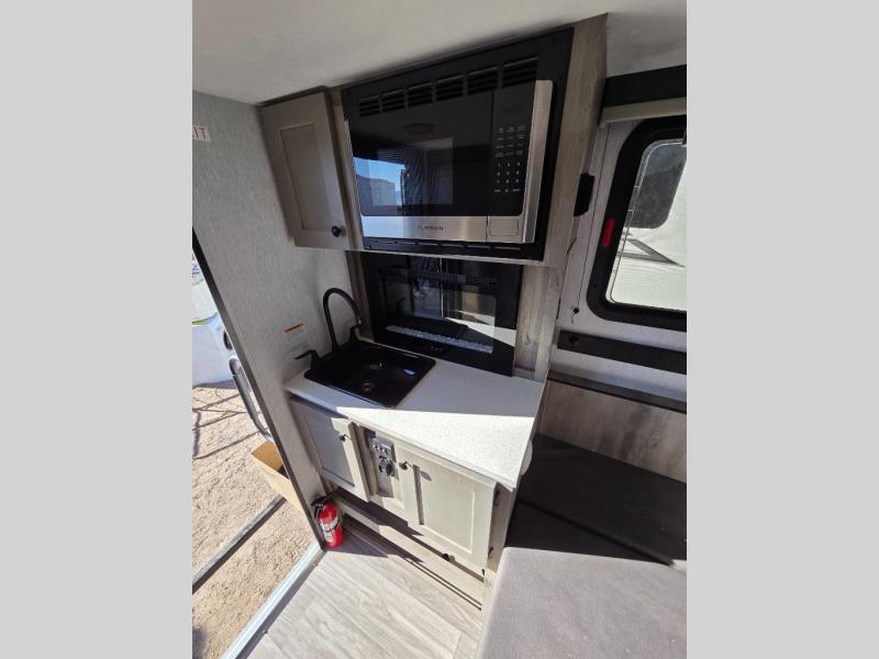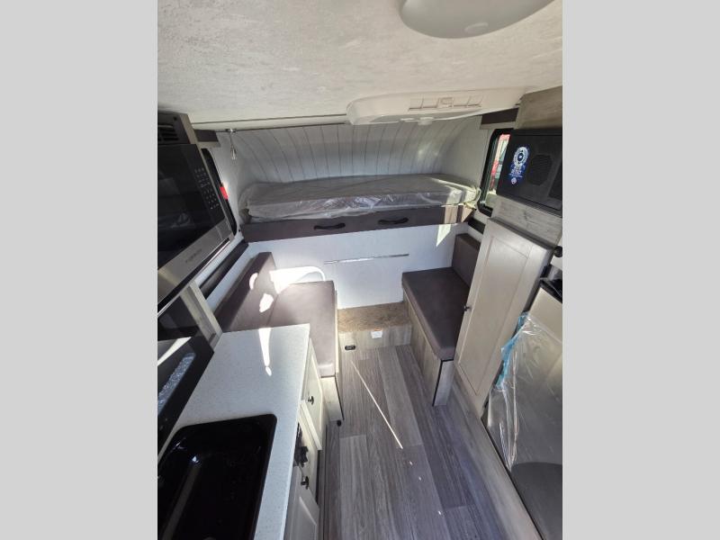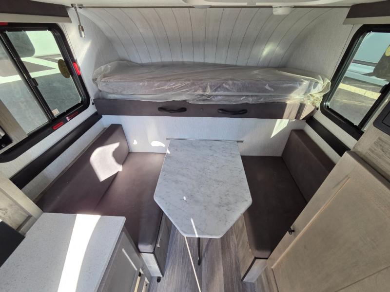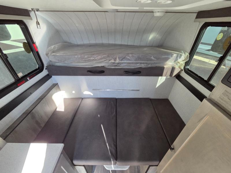 This truck camper is simple and to the point! You'll have somewhere to rest your head each night thanks to the front bed and booth dinette that will double as both seating and sleeping space. Once you've made dinner on your own outdoor grill, you can wash up using the indoor sink, and there is counter space here also. You'll appreciate the added safety features that include a smoke detector, fire extinguisher, and a C/O detector.