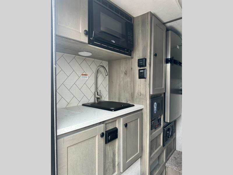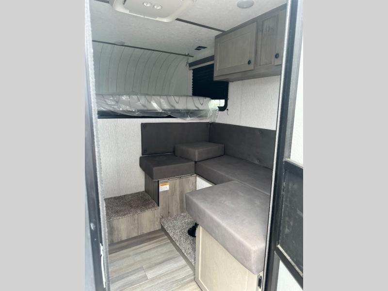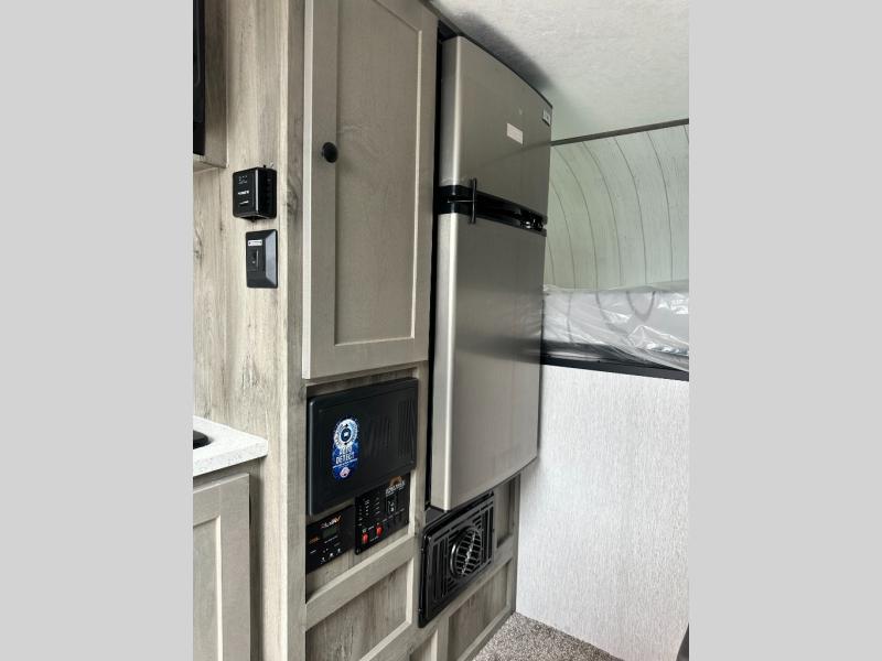 With any Sun Trek truck camper by Sunset Park RV, you will find a durable camper made to last thanks to the vacuum bonded laminated sidewalls and one-piece PVC roof membrane. You will also appreciate your choice of white or gray sidewalls, plus there are manual jacks outside and a 100-watt solar panel for some off-grid power. Inside, a power roof vent will help keep air moving, and you can choose an optional roof A/C if you enjoy camping in the summertime. Additional interior comforts include LED lights, tinted windows and solid surface countertops with a sink cover!
