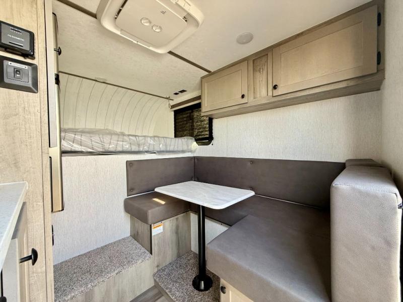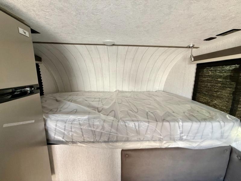 With any Sun Trek truck camper by Sunset Park RV, you will find a durable camper made to last thanks to the vacuum bonded laminated sidewalls and one-piece PVC roof membrane. You will also appreciate your choice of white or gray sidewalls, plus there are manual jacks outside and a 100-watt solar panel for some off-grid power. Inside, a power roof vent will help keep air moving, and you can choose an optional roof A/C if you enjoy camping in the summertime. Additional interior comforts include LED lights, tinted windows and solid surface countertops with a sink cover!