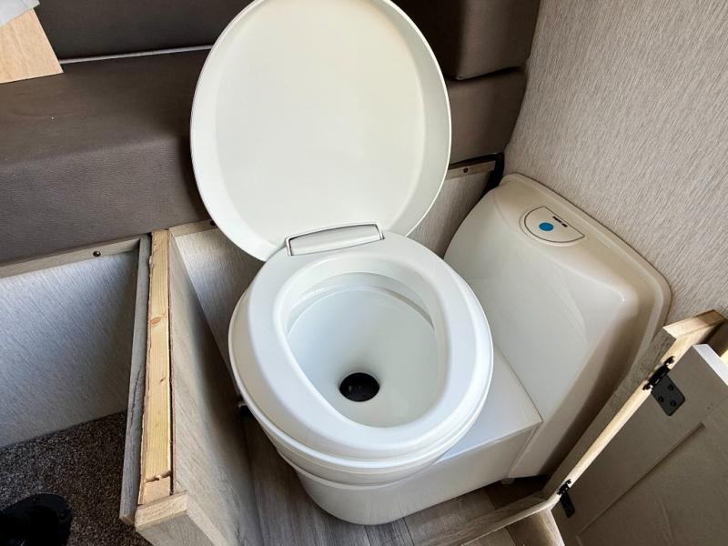 You're sure to find comfort in this truck camper for two! The front bed provides a great night's rest, and there is added seating at the foot of the bed and along the side. And a convenient toilet will let you skip the camp's facilities in the middle of the night. This unit also includes counter space, a sink to wash up and a 4.5 12V refrigerator to keep food fresh.