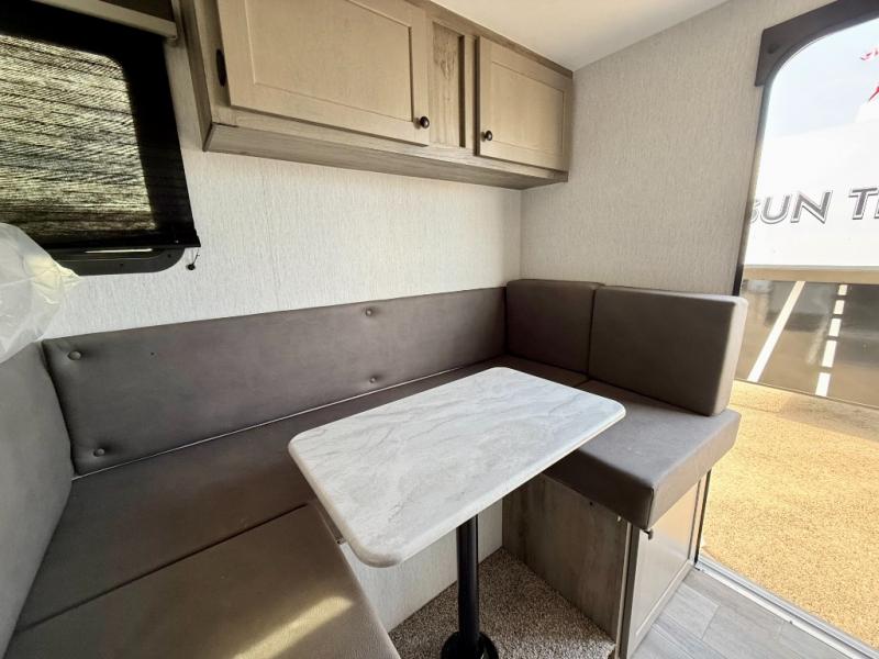 NEW 2026 Sun Trek 600 in White Exterior! 1 100ah Lithium, Propane tank (20 lb.) with Water Heater, 20K BTU Furnace, 190W Solar, roof A/C, Power Rear Awning, Toilet, Sink, Refer, Microwave, Outdoor Shower, more!