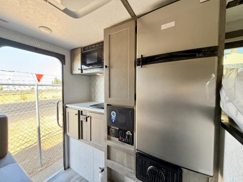 NEW 2026 Sun Trek 600 in White Exterior! 1 100ah Lithium, Propane tank (20 lb.) with Water Heater, 20K BTU Furnace, 190W Solar, roof A/C, Power Rear Awning, Toilet, Sink, Refer, Microwave, Outdoor Shower, more!