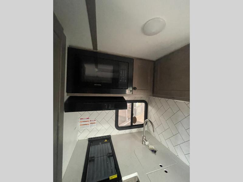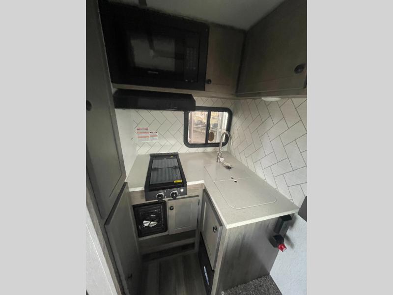With any Sun Trek truck camper by Sunset Park RV, you will find a durable camper made to last thanks to the vacuum bonded laminated sidewalls and one-piece PVC roof membrane. You will also appreciate your choice of white or gray sidewalls, plus there are manual jacks outside and a 100-watt solar panel for some off-grid power. Inside, a power roof vent will help keep air moving, and you can choose an optional roof A/C if you enjoy camping in the summertime. Additional interior comforts include LED lights, tinted windows and solid surface countertops with a sink cover!