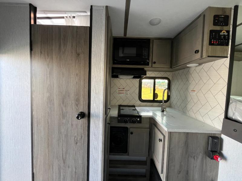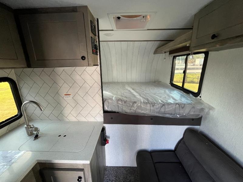 With any Sun Trek truck camper by Sunset Park RV, you will find a durable camper made to last thanks to the vacuum bonded laminated sidewalls and one-piece PVC roof membrane. You will also appreciate your choice of white or gray sidewalls, plus there are manual jacks outside and a 100-watt solar panel for some off-grid power. Inside, a power roof vent will help keep air moving, and you can choose an optional roof A/C if you enjoy camping in the summertime. Additional interior comforts include LED lights, tinted windows and solid surface countertops with a sink cover!