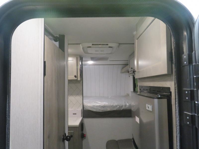 With any Sun Trek truck camper by Sunset Park RV, you will find a durable camper made to last thanks to the vacuum bonded laminated sidewalls and one-piece PVC roof membrane. You will also appreciate your choice of white or gray sidewalls, plus there are manual jacks outside and a 100-watt solar panel for some off-grid power. Inside, a power roof vent will help keep air moving, and you can choose an optional roof A/C if you enjoy camping in the summertime. Additional interior comforts include LED lights, tinted windows and solid surface countertops with a sink cover!