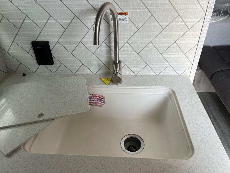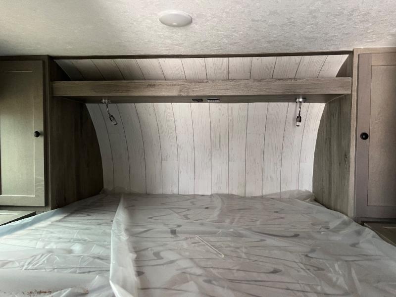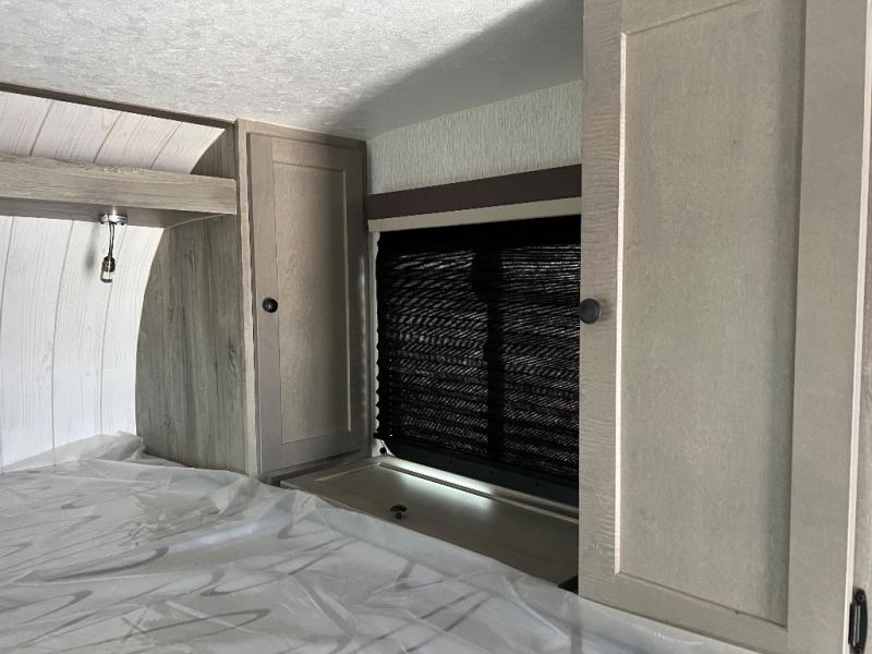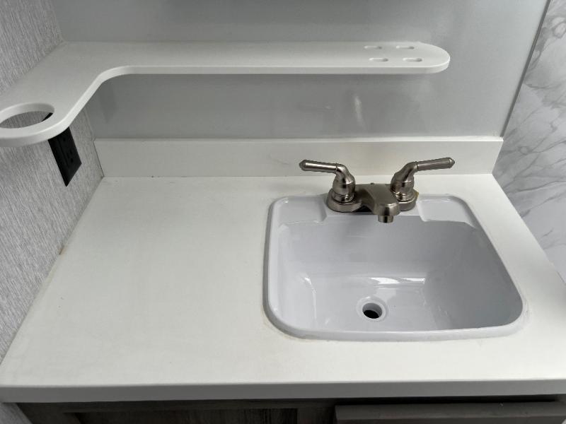 With any Sun Trek truck camper by Sunset Park RV, you will find a durable camper made to last thanks to the vacuum bonded laminated sidewalls and one-piece PVC roof membrane. You will also appreciate your choice of white or gray sidewalls, plus there are manual jacks outside and a 100-watt solar panel for some off-grid power. Inside, a power roof vent will help keep air moving, and you can choose an optional roof A/C if you enjoy camping in the summertime. Additional interior comforts include LED lights, tinted windows and solid surface countertops with a sink cover!