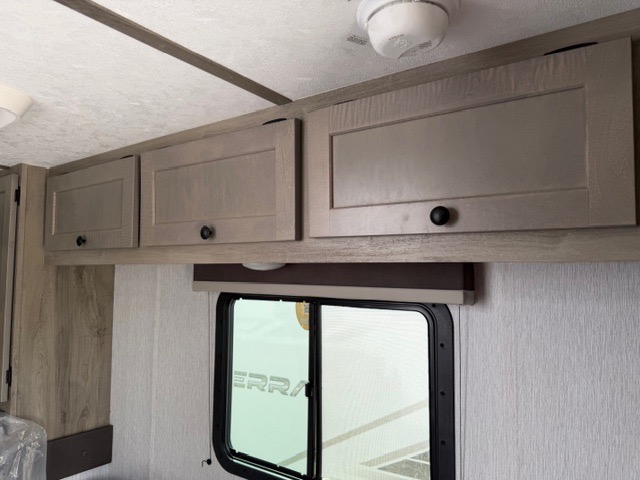 With any Sun Trek truck camper by Sunset Park RV, you will find a durable camper made to last thanks to the vacuum bonded laminated sidewalls and one-piece PVC roof membrane. You will also appreciate your choice of white or gray sidewalls, plus there are manual jacks outside and a 100-watt solar panel for some off-grid power. Inside, a power roof vent will help keep air moving, and you can choose an optional roof A/C if you enjoy camping in the summertime. Additional interior comforts include LED lights, tinted windows and solid surface countertops with a sink cover!