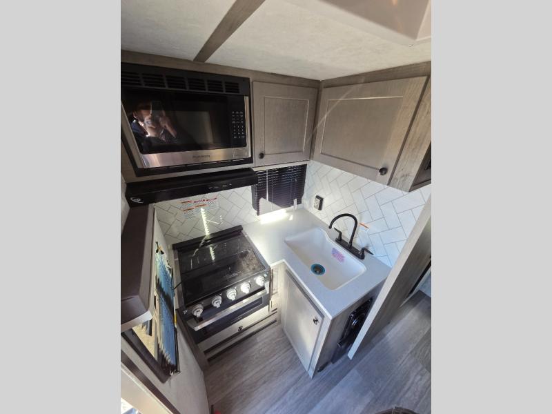 If you're looking for a little more comfort in a truck camper, your search is over! Once you stop for the day, you can make dinner on the three burner stove top, wash up in the wet bath, then relax on the sofa. The front bed will provide a comfy place to rest your head each night so you can tackle the day ahead. This unit includes the Sun Trek Camping Package that features a 6 gallon DSI gas water heater, a 20 lb. LP tank, a range hood with a vent plus more!