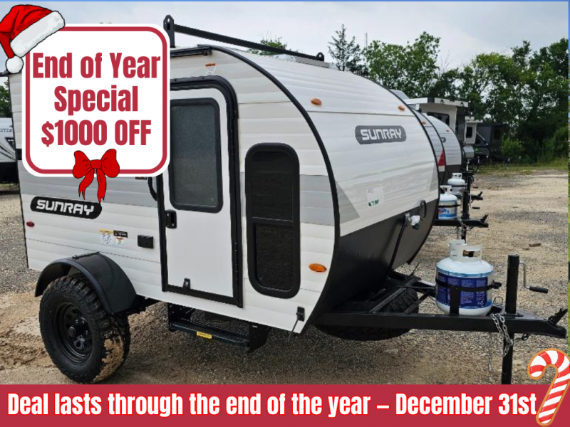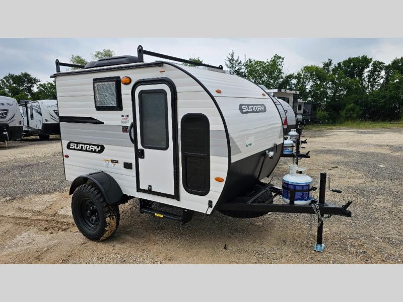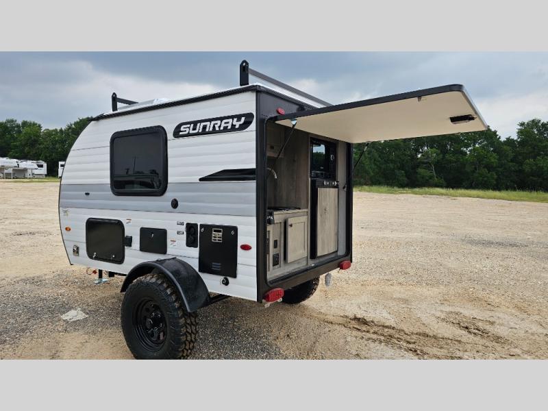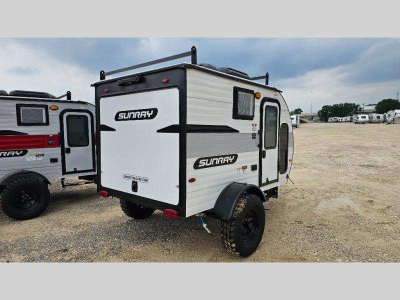 The Sunray travel trailer from Sunset Park RV is an investment that you'll be able to enjoy for many years to come! These compact trailers are effortless to tow, so you won't need fancy equipment to have fun at the campsite. The Sunray is built upon a powder-coated steel chassis, and it has a diamond plate rock guard to keep the front end protected from debris. You'll find radial tires, a spare tire with carrier where available, and .024" aluminum siding on each model. You'll be able to remain comfortable when staying indoors thanks to the A/C and furnace. Another way that your camping experience will be elevated is with the Confidence Package which comes with a 6” lift with off-road tires, black steel rims, a roof rack, and more!