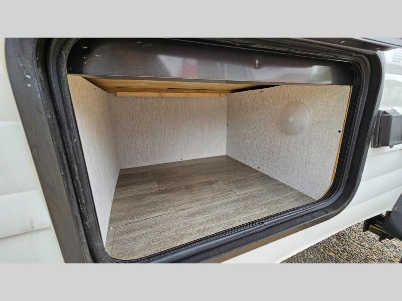 This Sunray travel trailer with its 12' length and 1,320-LB dry weight, is simple to navigate. You have most of the basic essentials without needing to tow all of the extra weight. There is an outdoor kitchen that comes with a two-burner stove top, a refrigerator, and a microwave so that you can cook dinner without having to start a fire. You will have an outside shower that you can use for various purposes, like rinsing off your equipment, filling a bucket with water, or hosing down your muddy puppy, and there are USB ports and a Winegard HDTV antenna to keep you modern.
