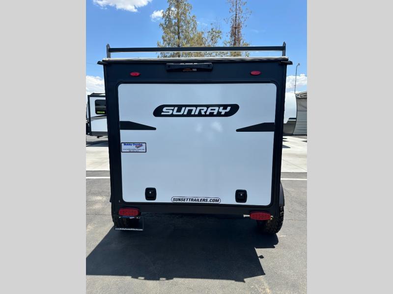 The Sunray travel trailer from Sunset Park RV is an investment that you'll be able to enjoy for many years to come! These compact trailers are effortless to tow, so you won't need fancy equipment to have fun at the campsite. The Sunray is built upon a powder-coated steel chassis, and it has a diamond plate rock guard to keep the front end protected from debris. You'll find radial tires, a spare tire with carrier where available, and .024" aluminum siding on each model. You'll be able to remain comfortable when staying indoors thanks to the A/C and furnace. Another way that your camping experience will be elevated is with the Confidence Package which comes with a 6” lift with off-road tires, black steel rims, a roof rack, and more!