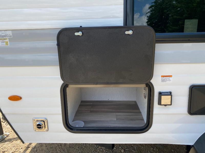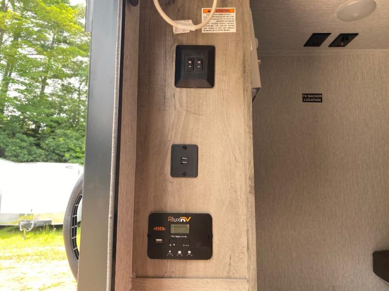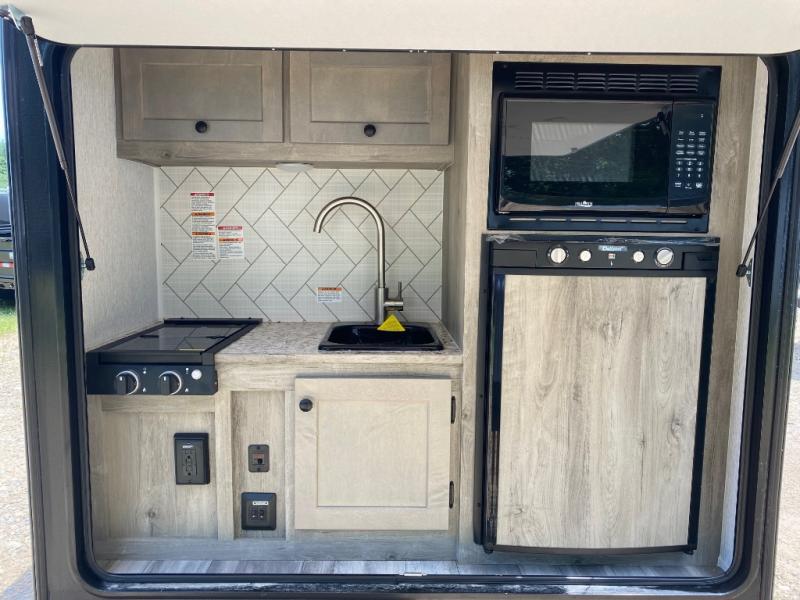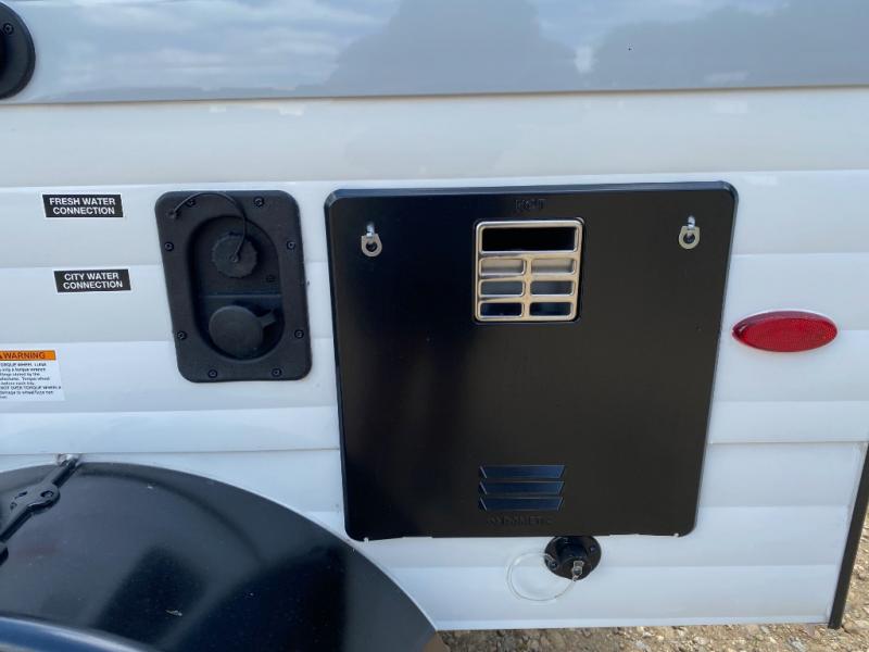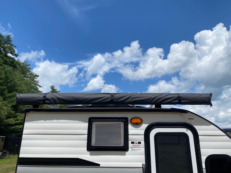 This Sunray travel trailer with its 12' length and 1,320-LB dry weight, is simple to navigate. You have most of the basic essentials without needing to tow all of the extra weight. There is an outdoor kitchen that comes with a two-burner stove top, a refrigerator, and a microwave so that you can cook dinner without having to start a fire. You will have an outside shower that you can use for various purposes, like rinsing off your equipment, filling a bucket with water, or hosing down your muddy puppy, and there are USB ports and a Winegard HDTV antenna to keep you modern.