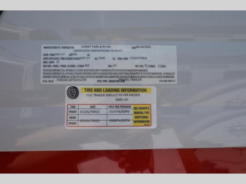 New 2026 Sunset Park RV SunRay 109 Travel Trailer
