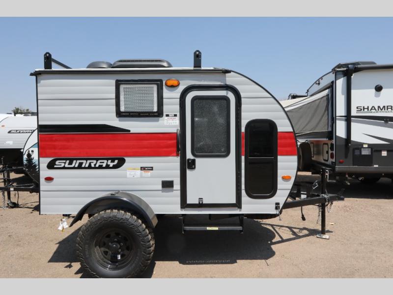 The Sunray travel trailer from Sunset Park RV is an investment that you'll be able to enjoy for many years to come! These compact trailers are effortless to tow, so you won't need fancy equipment to have fun at the campsite. The Sunray is built upon a powder-coated steel chassis, and it has a diamond plate rock guard to keep the front end protected from debris. You'll find radial tires, a spare tire with carrier where available, and .024" aluminum siding on each model. You'll be able to remain comfortable when staying indoors thanks to the A/C and furnace. Another way that your camping experience will be elevated is with the Confidence Package which comes with a 6” lift with off-road tires, black steel rims, a roof rack, and more!