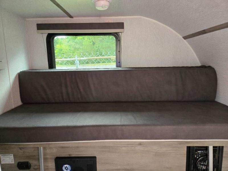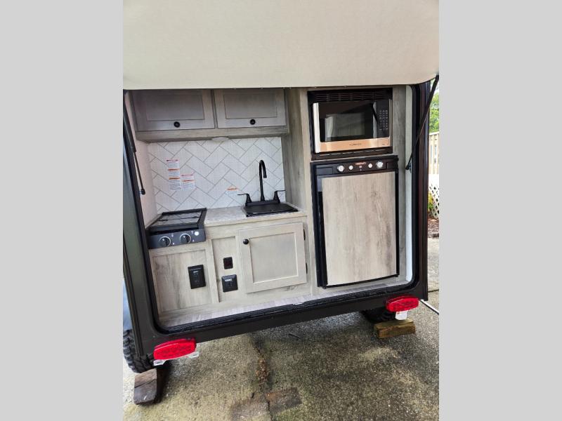 This Sunray travel trailer with its 12' length and 1,320-LB dry weight, is simple to navigate. You have most of the basic essentials without needing to tow all of the extra weight. There is an outdoor kitchen that comes with a two-burner stove top, a refrigerator, and a microwave so that you can cook dinner without having to start a fire. You will have an outside shower that you can use for various purposes, like rinsing off your equipment, filling a bucket with water, or hosing down your muddy puppy, and there are USB ports and a Winegard HDTV antenna to keep you modern.
