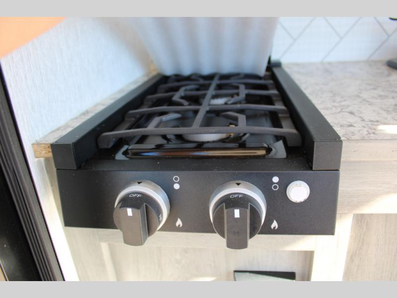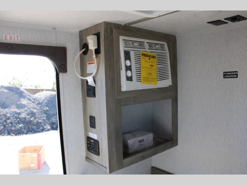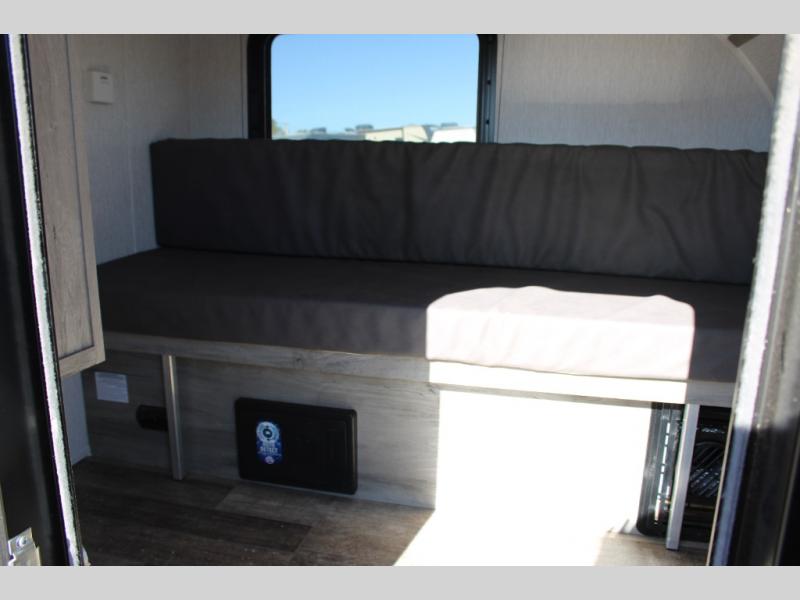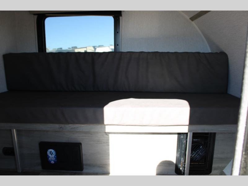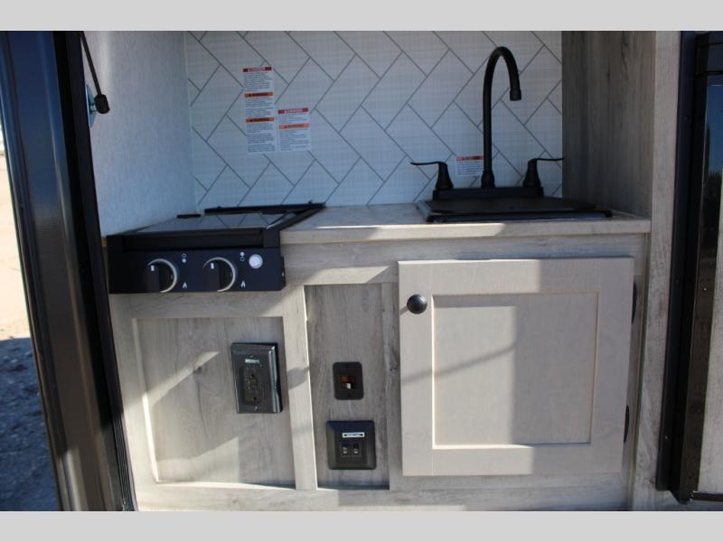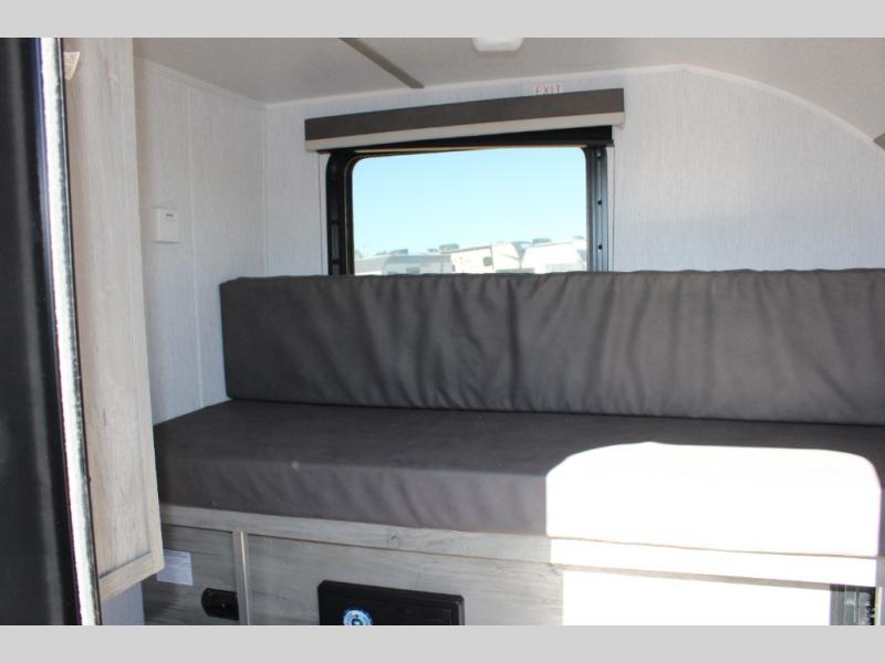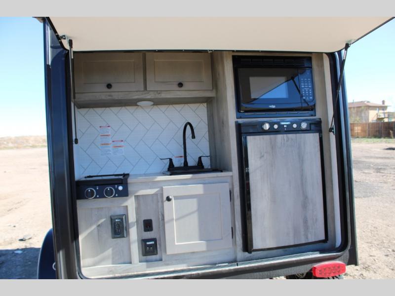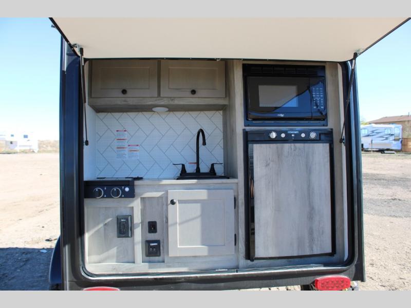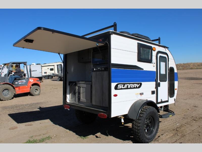 This Sunray travel trailer with its 12' length and 1,320-LB dry weight, is simple to navigate. You have most of the basic essentials without needing to tow all of the extra weight. There is an outdoor kitchen that comes with a two-burner stove top, a refrigerator, and a microwave so that you can cook dinner without having to start a fire. You will have an outside shower that you can use for various purposes, like rinsing off your equipment, filling a bucket with water, or hosing down your muddy puppy, and there are USB ports and a Winegard HDTV antenna to keep you modern.