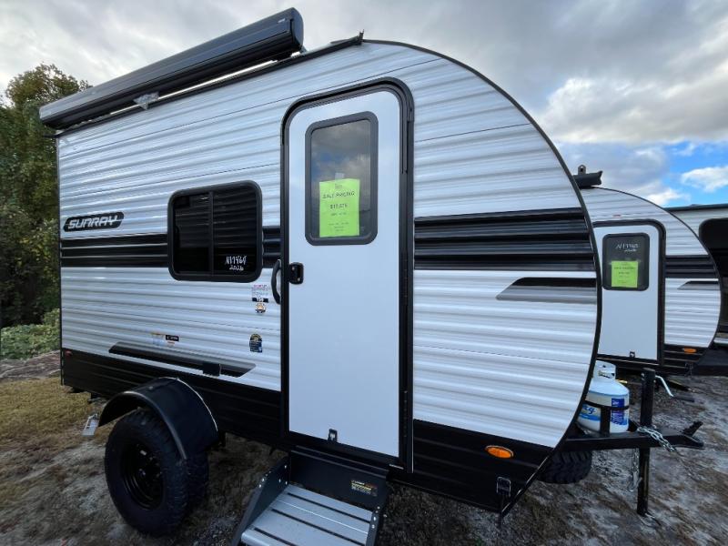 The Sunray travel trailer from Sunset Park RV is an investment that you'll be able to enjoy for many years to come! These compact trailers are effortless to tow, so you won't need fancy equipment to have fun at the campsite. The Sunray is built upon a powder-coated steel chassis, and it has a one-piece PVC roof membrane to keep the RV protected. You'll find radial tires, a spare tire with carrier where available, and .024" aluminum siding on each model. You'll be able to remain comfortable when staying indoors thanks to the A/C and furnace. Another way that your camping experience will be elevated is with the Confidence Package which comes with a 100 W solar kit w/ controller installed, a roof rack, and more!