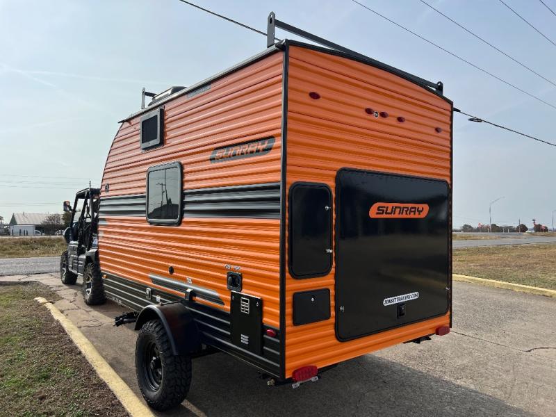 The Sunray travel trailer from Sunset Park RV is an investment that you'll be able to enjoy for many years to come! These compact trailers are effortless to tow, so you won't need fancy equipment to have fun at the campsite. The Sunray is built upon a powder-coated steel chassis, and it has a diamond plate rock guard to keep the front end protected from debris. You'll find radial tires, a spare tire with carrier where available, and .024" aluminum siding on each model. You'll be able to remain comfortable when staying indoors thanks to the A/C and furnace. Another way that your camping experience will be elevated is with the Confidence Package which comes with a 6” lift with off-road tires, black steel rims, a roof rack, and more!