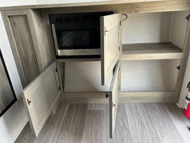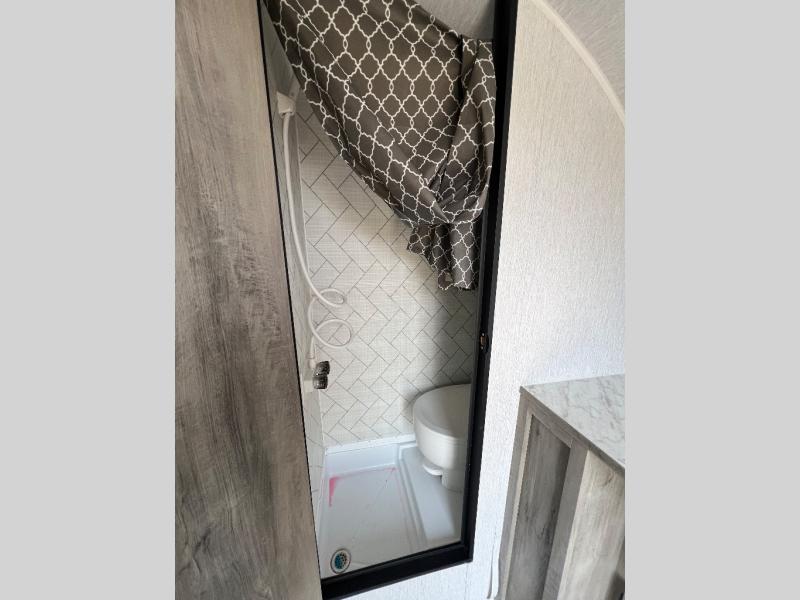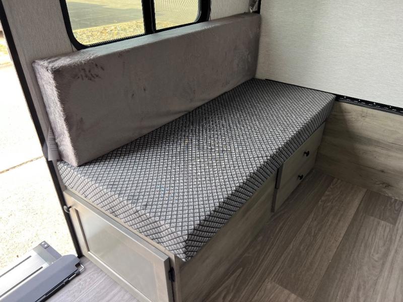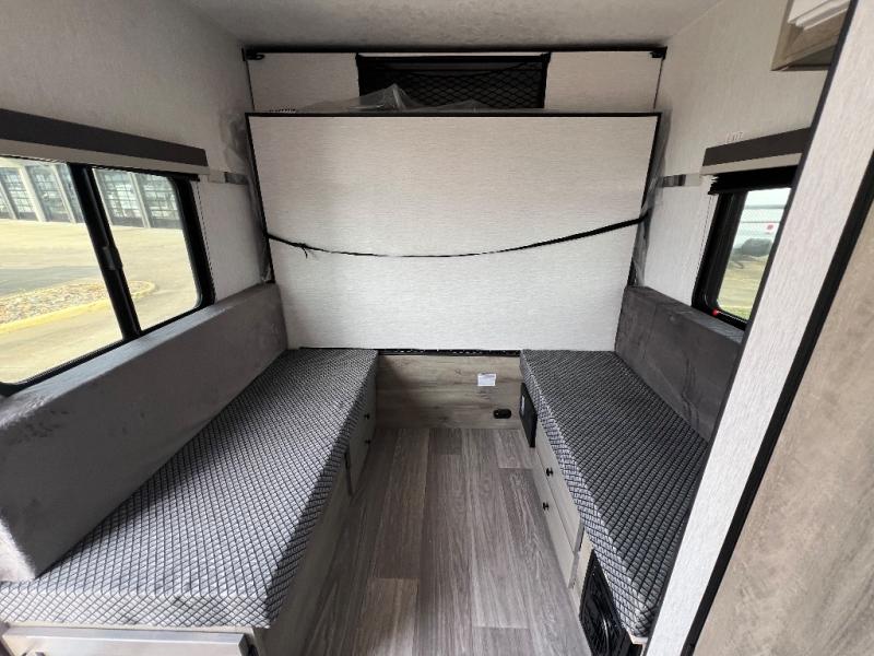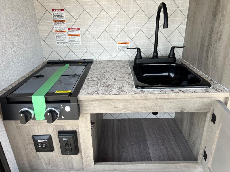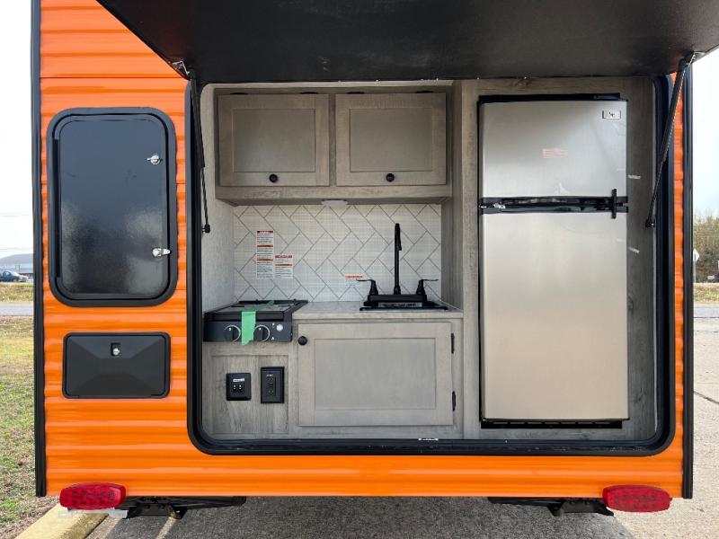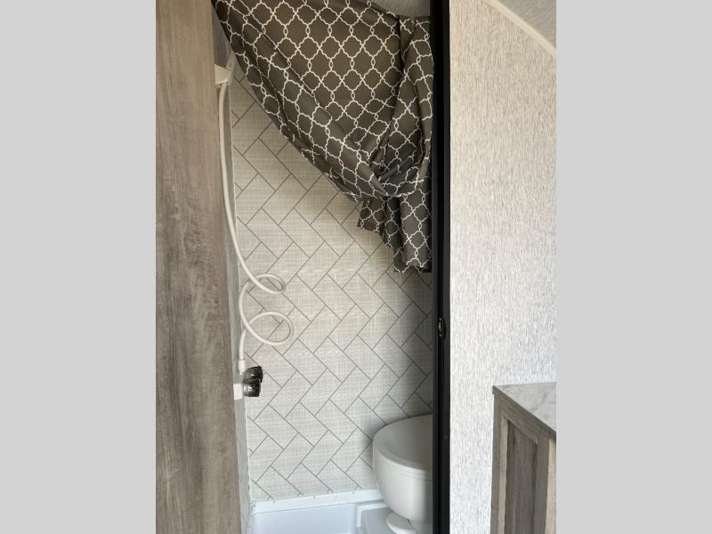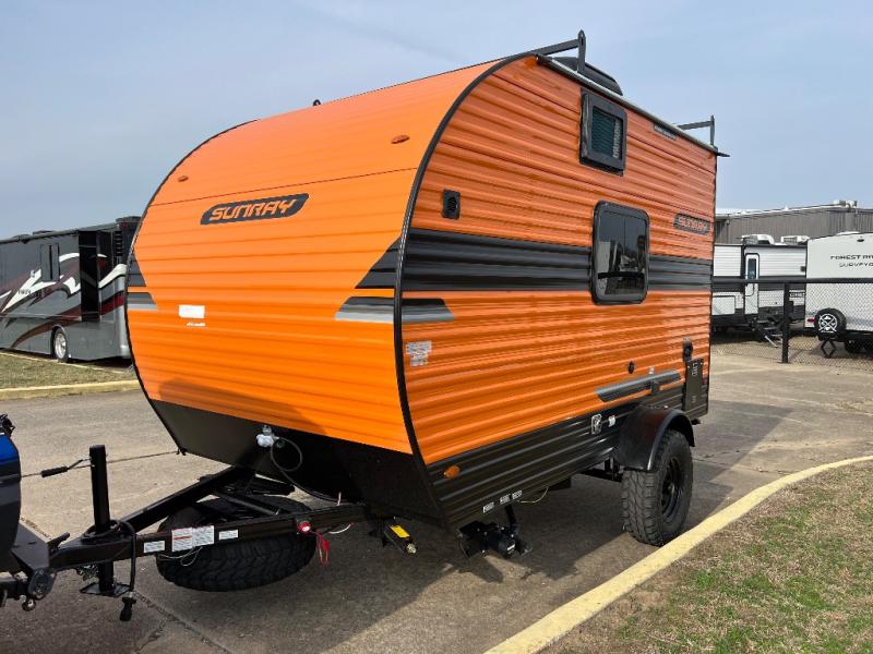 It will be amazingly easy to get to the campsite with this Sunray travel trailer! You can use the dinette during the day as a dining location and at night as a sleeping space, and the bunk above the dinette will serve as an additional sleep space for another tired traveler. Make your world-famous pancakes on the two-burner stove top outside, and spend some time washing dishes afterwards in the indoor and outdoor sink. Also on the interior, you will find a private toilet which will be ultra convenient when you wake up in the middle of the night and need to go to the bathroom. You can add the optional Sports Package featuring 14" tires instead of the off-road tires, color matching rims with Moon Caps, and Retro Decor and Diner-Style Countertops.