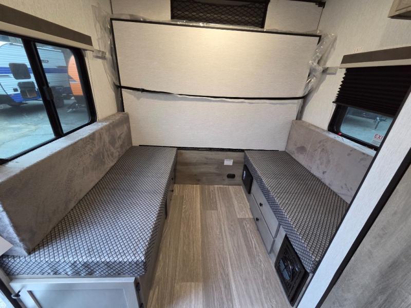 It will be amazingly easy to get to the campsite with this Sunray travel trailer! You can use the dinette during the day as a dining location and at night as a sleeping space. Make your world-famous pancakes on the two-burner stove top outside, and spend some time washing dishes afterwards in the indoor and outdoor sink. Also on the interior, you will find a private toilet which will be ultra convenient when you wake up in the middle of the night and need to go to the bathroom. You can add the optional Classic Package featuring 14" tires instead of the off-road tires, color matching rims with Moon Caps, and Retro Decor and Diner-Style Countertops.