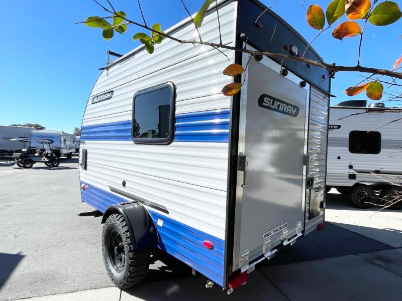 The Sunray travel trailer from Sunset Park RV is an investment that you'll be able to enjoy for many years to come! These compact trailers are effortless to tow, so you won't need fancy equipment to have fun at the campsite. The Sunray is built upon a powder-coated steel chassis, and it has a diamond plate rock guard to keep the front end protected from debris. You'll find radial tires, a spare tire with carrier where available, and .024" aluminum siding on each model. You'll be able to remain comfortable when staying indoors thanks to the A/C and furnace. Another way that your camping experience will be elevated is with the Confidence Package which comes with a 6” lift with off-road tires, black steel rims, a roof rack, and more!