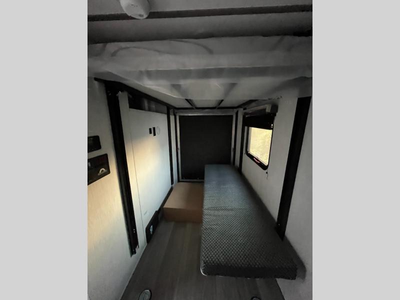 A ramp door makes it easy to load and unload this Sunray toy hauler! Since there is a folding bed, you won't have to blow up an air mattress to sleep at night. Make your world-famous pancakes on the outside two-burner stove top, and spend some time washing dishes afterwards in the indoor and outdoor sinks. Also on the interior, you will find a private toilet which will be ultra convenient when you wake up in the middle of the night and need to go to the bathroom. The tinted safety glass windows come with night shades to give you privacy at night and sunlight during the day. You could even add an optional fireplace for a truly relaxing evening indoors!