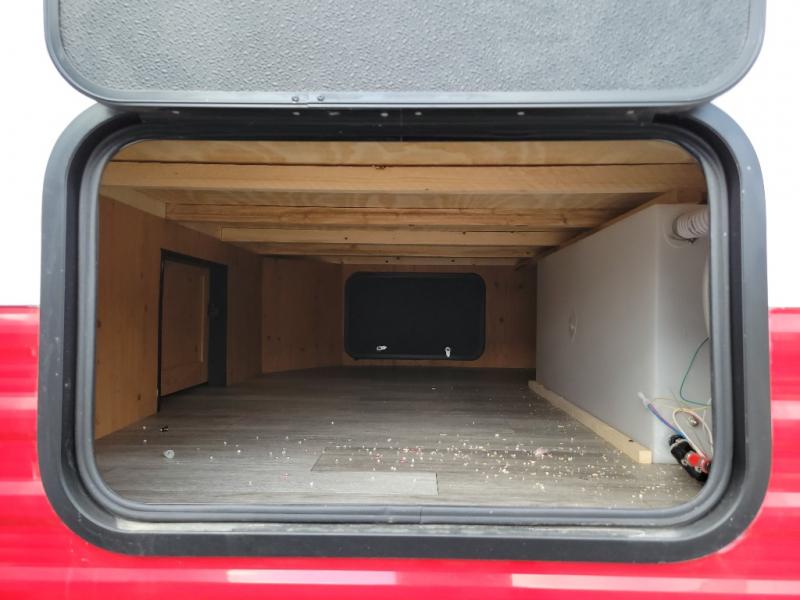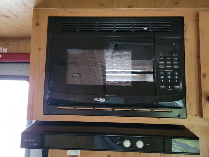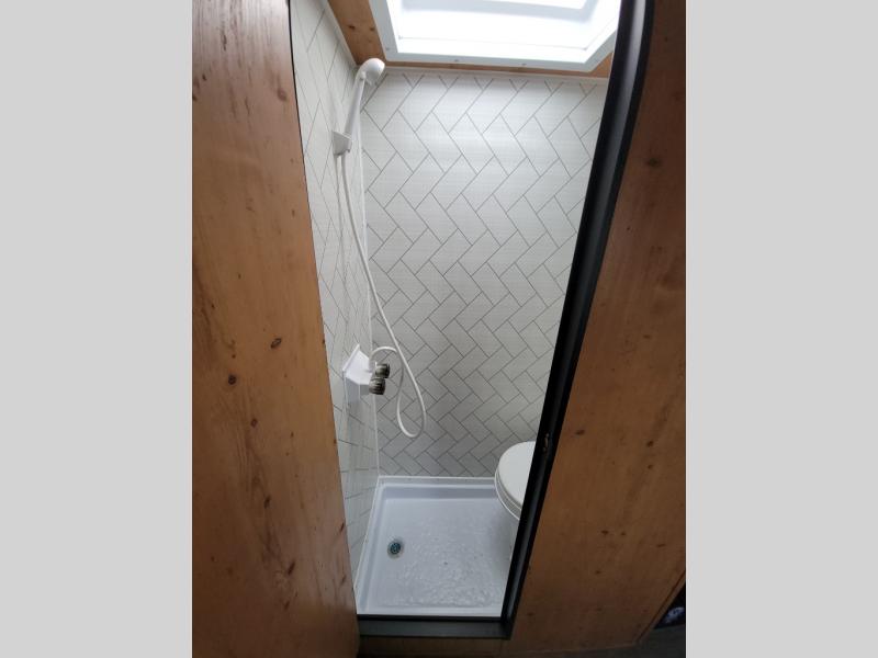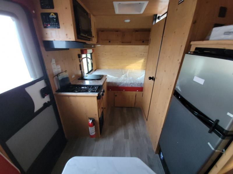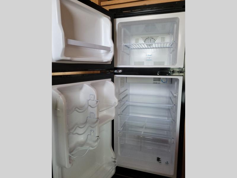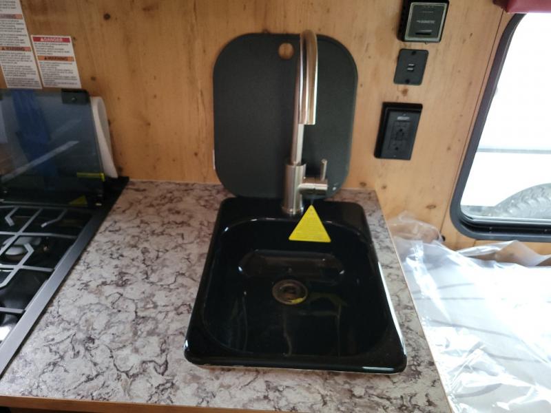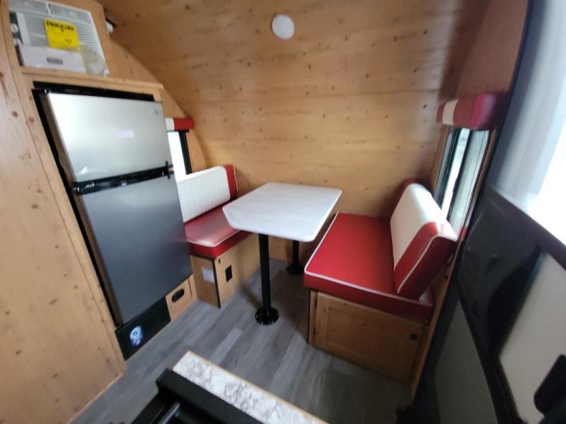 This Sunray travel trailer is the largest and most accommodating because it comes with a wet bath so that you can even take a shower in your trailer! There is a small kitchen on the interior that comes with a two-burner stove top, a refrigerator, and a microwave so that you can cook dinner without having to start a fire, and since it is indoors, you will be able to keep the bugs away while you prepare something delicious to eat. If you need to rinse off some gear, the outside shower will be especially useful, and if you need to charge your devices, use the USB ports. You will also find a Winegard HDTV antenna on this model. Add the available Classic option for 14" tires instead of the off-road version, color matching rims with Moon Caps, and Retro decor and Diner-Style countertops.